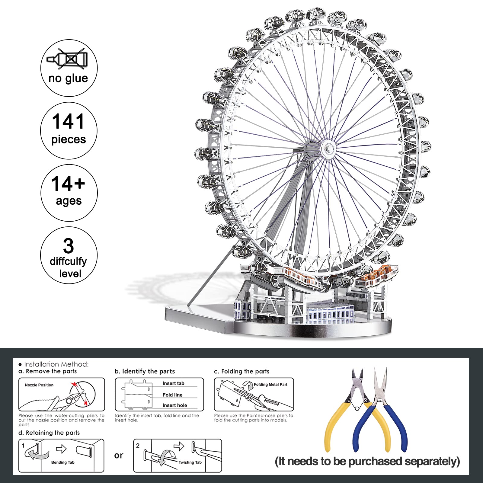 View comparePiececool 3D Metal Model Puzzles - Large London Eye Architecture Kit, 141 Pcs, White, Perfect for Adults & Unique Birthday Gifts