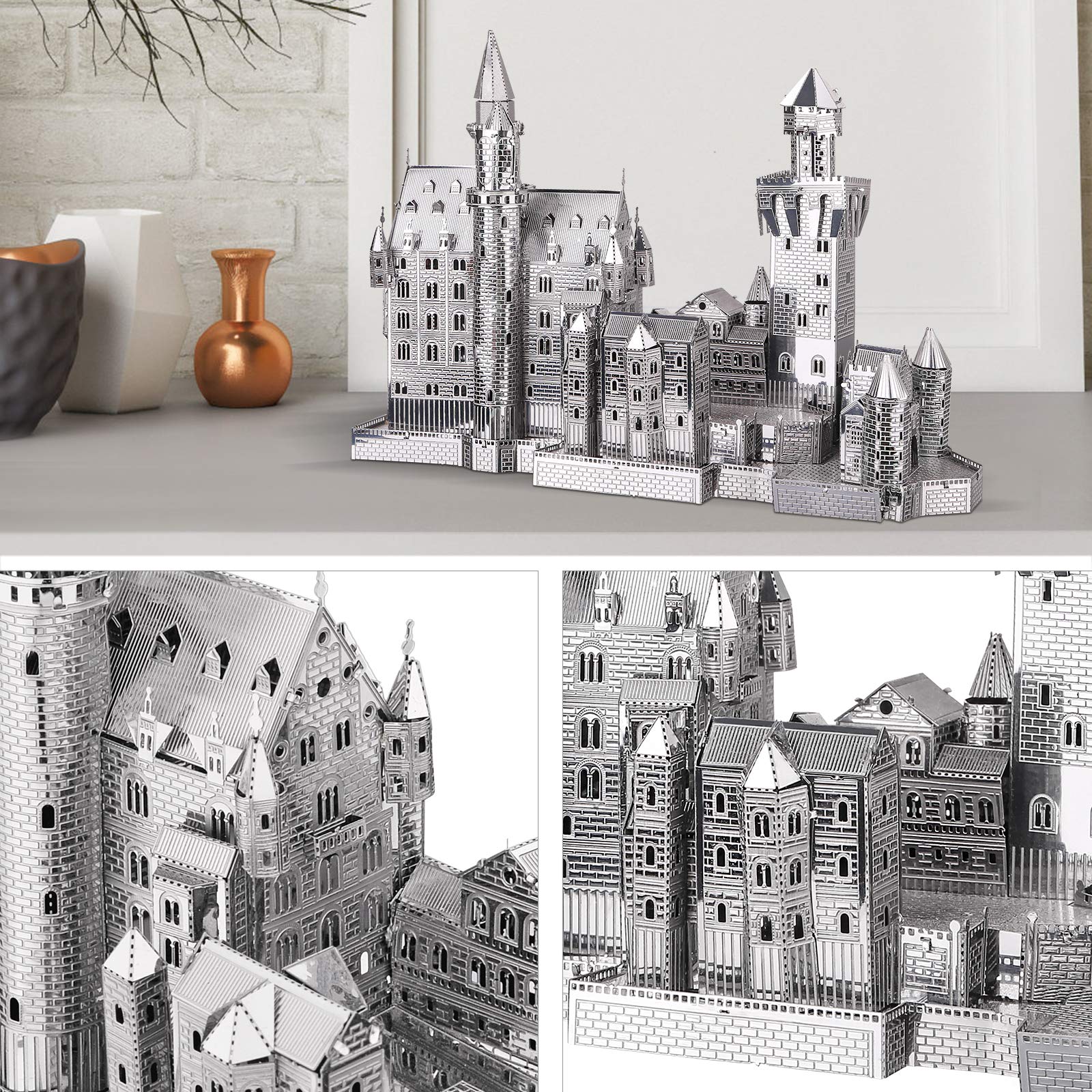 • Q: What materials are used in the construction of the 3D metal puzzle? A: The Piececool Neuschwanstein Castle 3D metal puzzle is made from high-quality 430 stainless steel, ensuring durability and a beautiful finish once assembled.