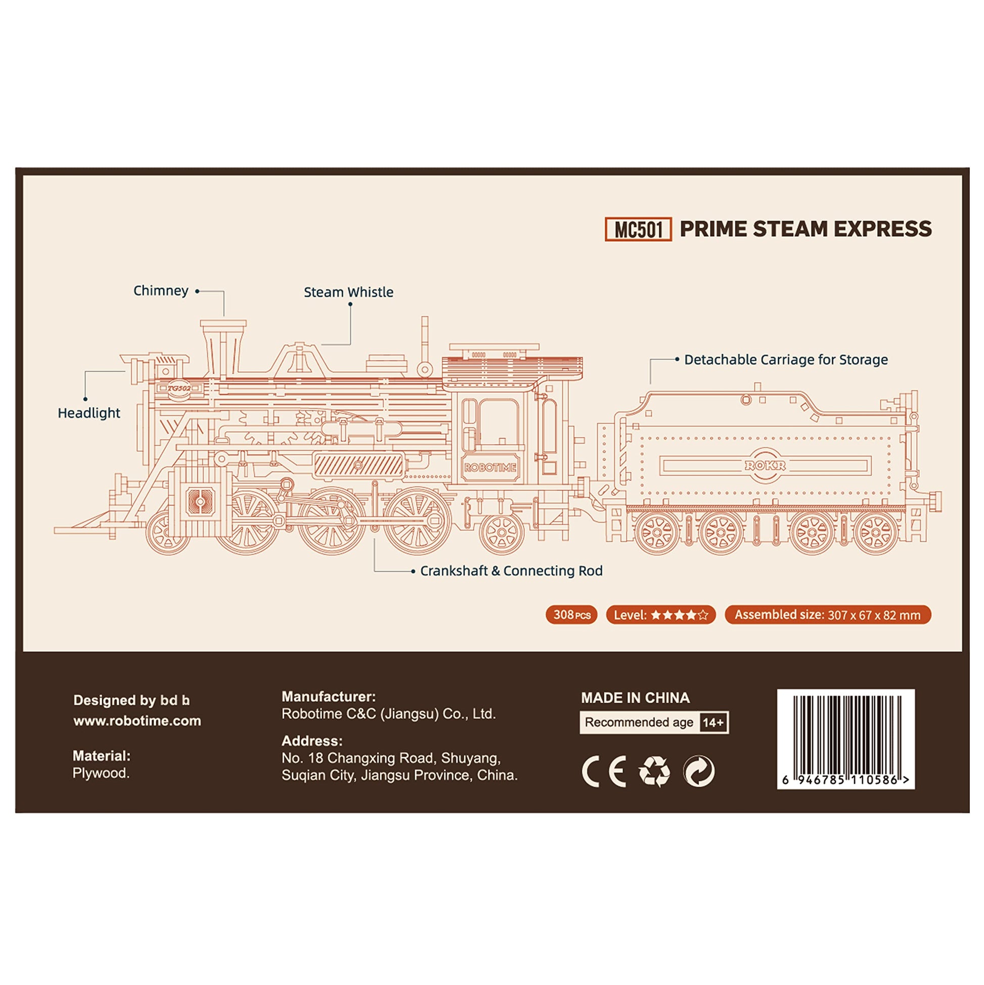 Rowood 3D Wooden Puzzle For Adults & Teens, Scale Mechanical Model Train Building Kits - Prime Steam Express