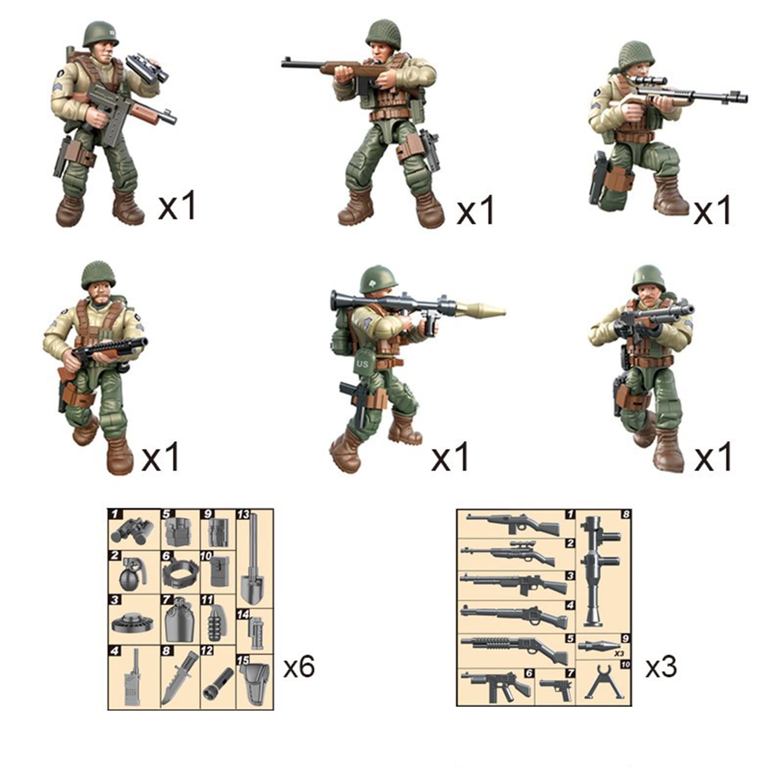 View compareMEIEST 6 PCS Mini WWII Soldier Military Action Figures Army Model Building Block Toys with Multiple Military Accessories Party Favors Set for Kids (US Army)
