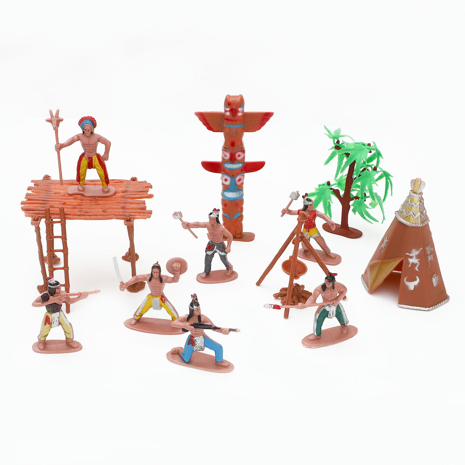 Feature: large quantities of products, feel like real Native American Specification: Material: plastic Color: as showed in picture Product weight: 6 ounces Note: away from fire Package include: 12 indian warrior figures, 4 horses, 2 fences, 1 totem pole ,1 tree, 1 tee-pee (teepee) , 1 fire, 1 fish in pot,1 rack, 1 shack with ladder