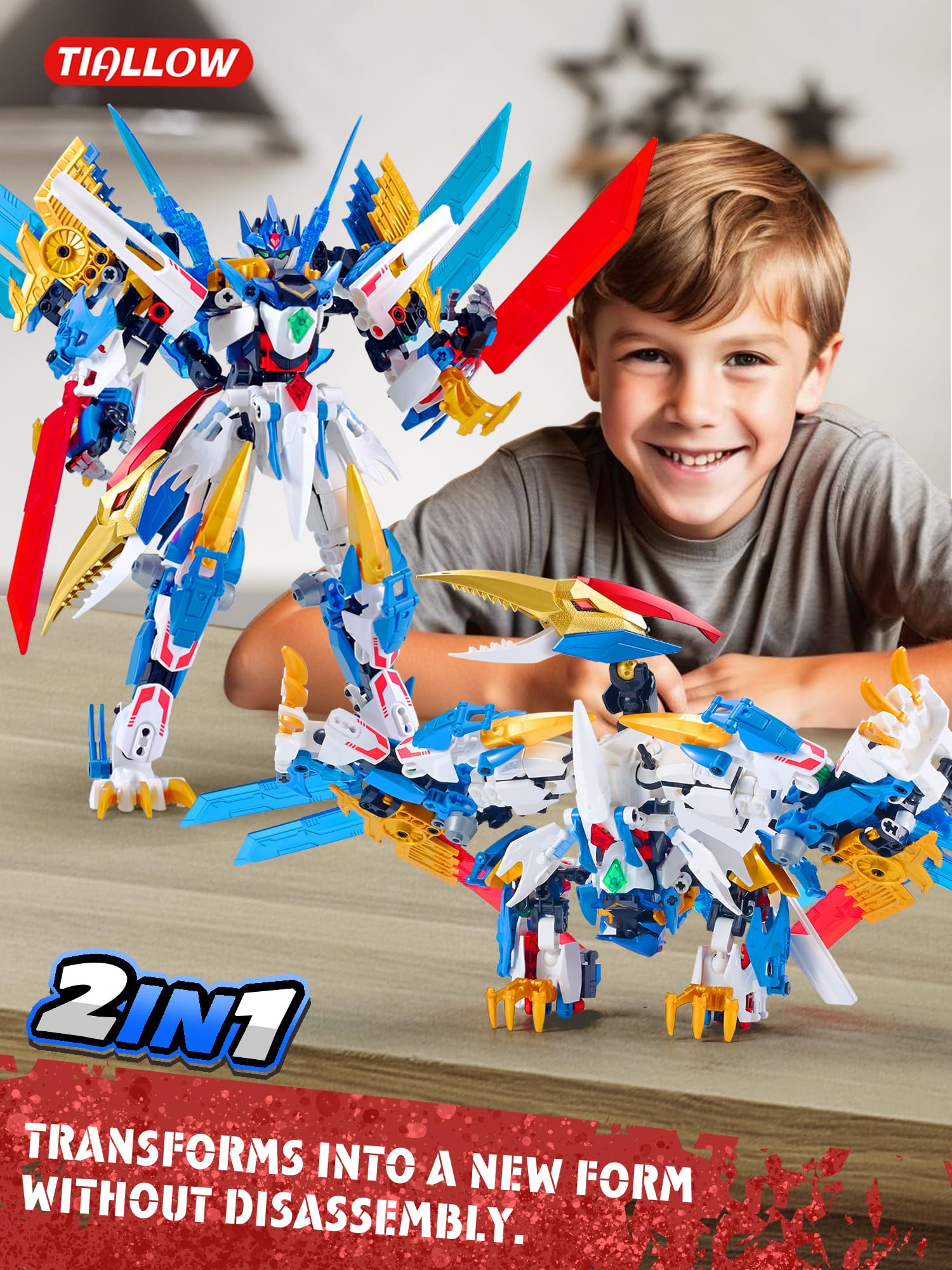 TIALLOW Pterodactyl Mech 2-in-1 Transforming Robot Building Sets Technic Dinosaurs Building Block Model Mecha Action Figures Building Kits Birthday for Boys mature-themed Age 8-12 (Pterodactyl)