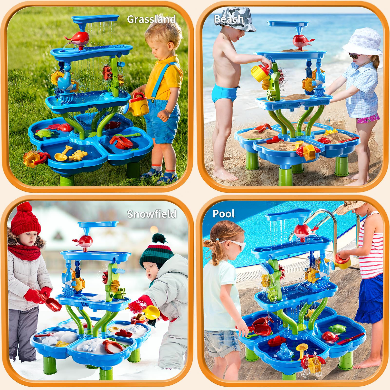 4 -Tier Kids Water Play Table For Kids Toddlers 3-5 4-8, Sand And Water Table With Rich Activity Set, Water And Sand Sensory Act