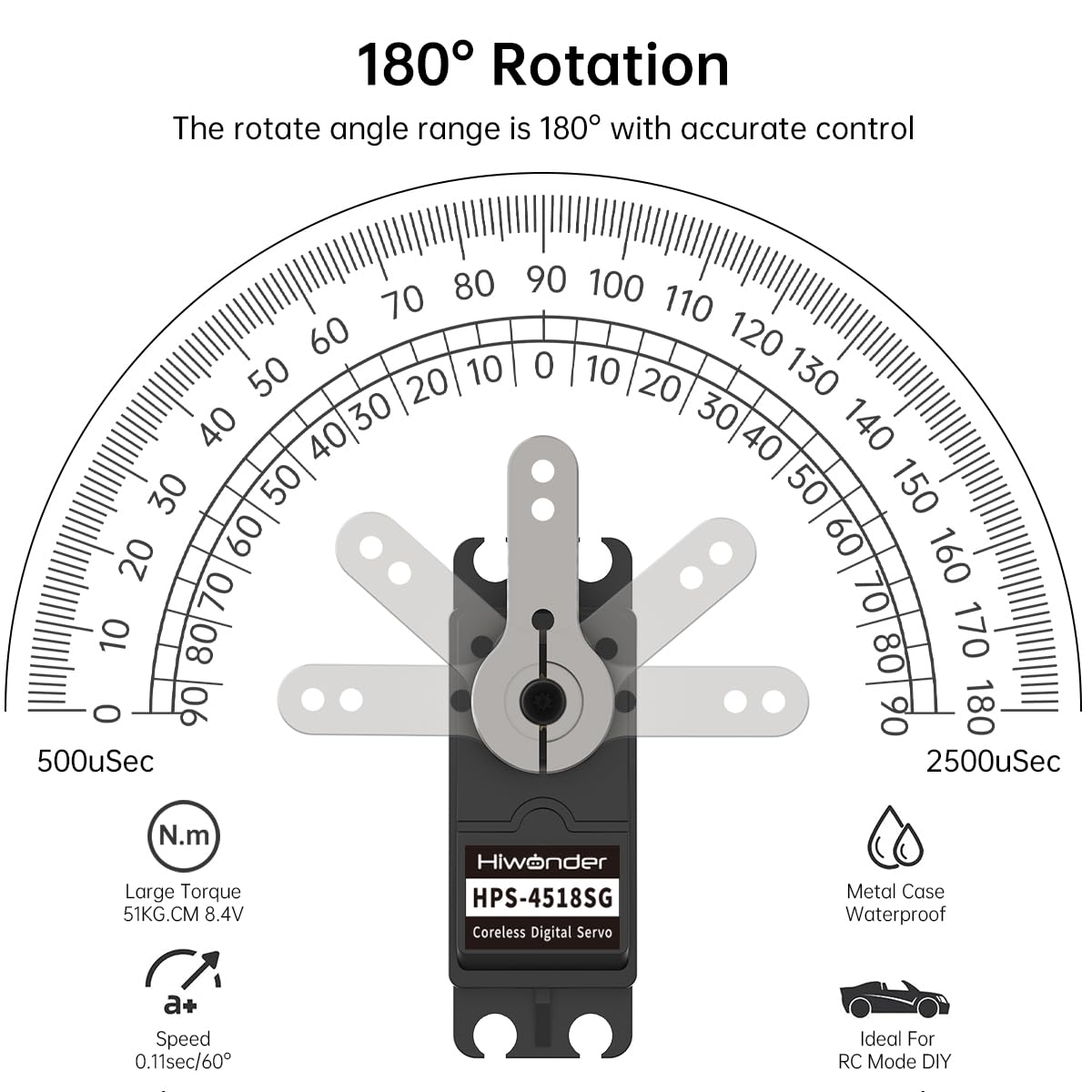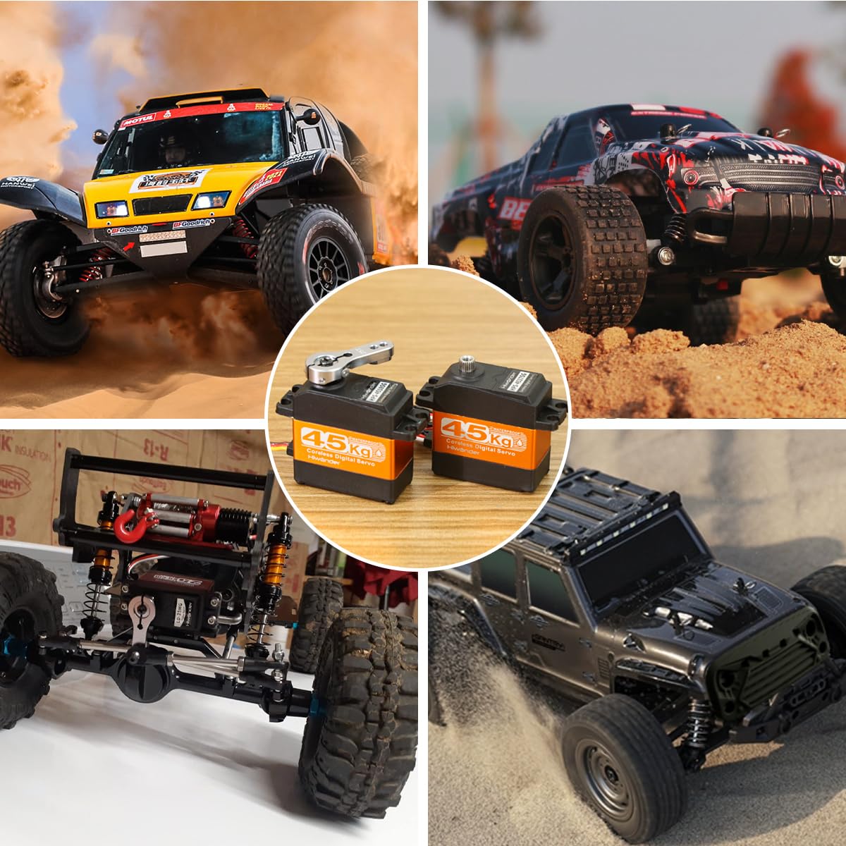 2024 Upgrade Servo for RC Car & Robot DIY. It fits 1/6 1/8 1/10 1/12 RC cars, robots, vehicle/boat/airplane models, and any robot DIY. 2024 Upgrade new model coreless stainless steel gear waterproof digital servo, highly fit for RC car.