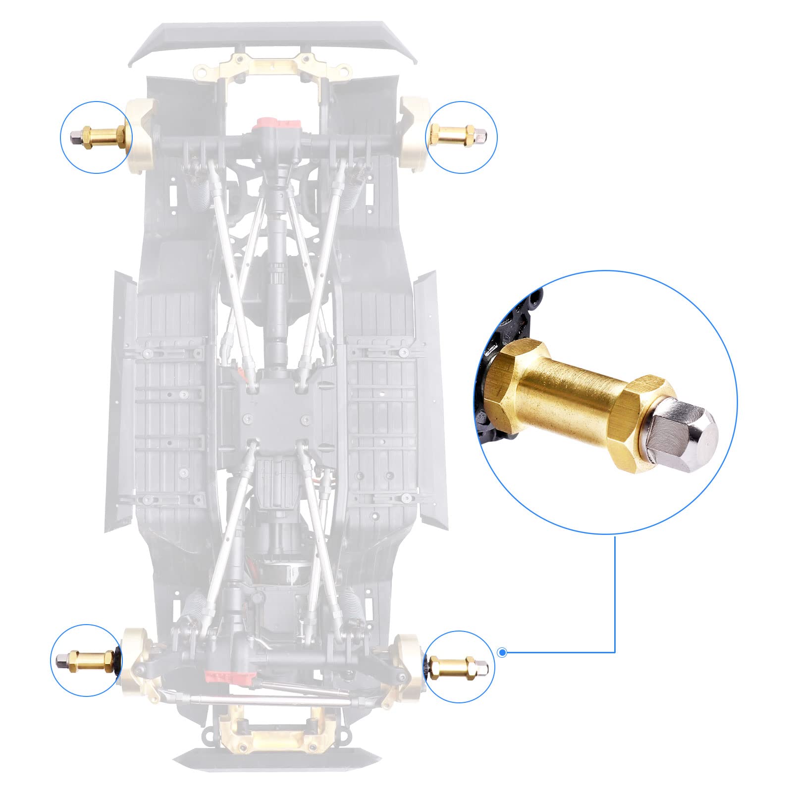 4Pcs Crazyhobby Brass Rc 12Mm Wheel Hubs Extensions Wheel Spacers Hex Drive Adapter For 1/10 Rc Crawler Axial Scx10 & Scx10 Ii 9