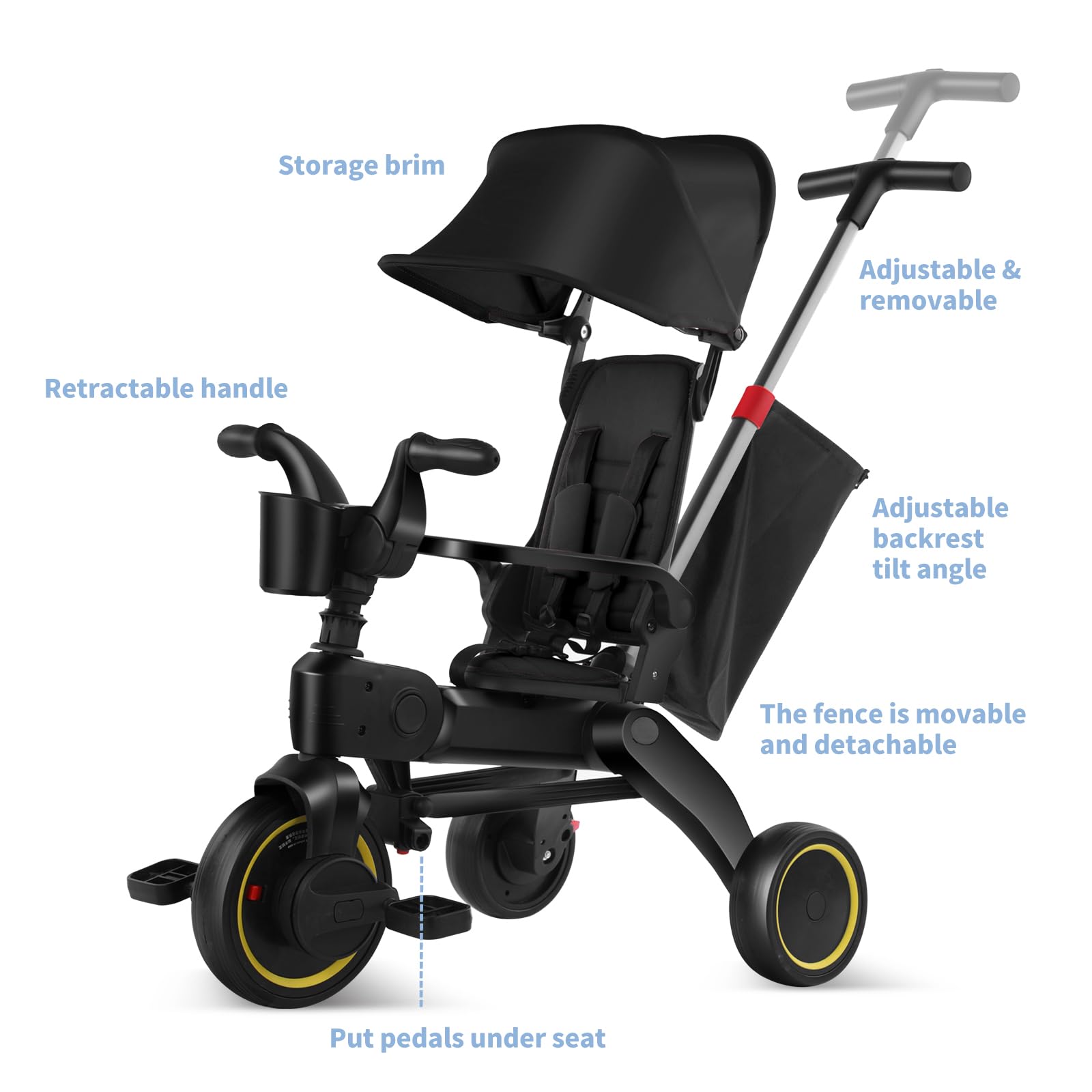 5-in-1 Compact, Foldable Tricycle - Suitable for Toddlers 10 to 36 Months Push Tricycle Bike for Toddlers with Removable Handle