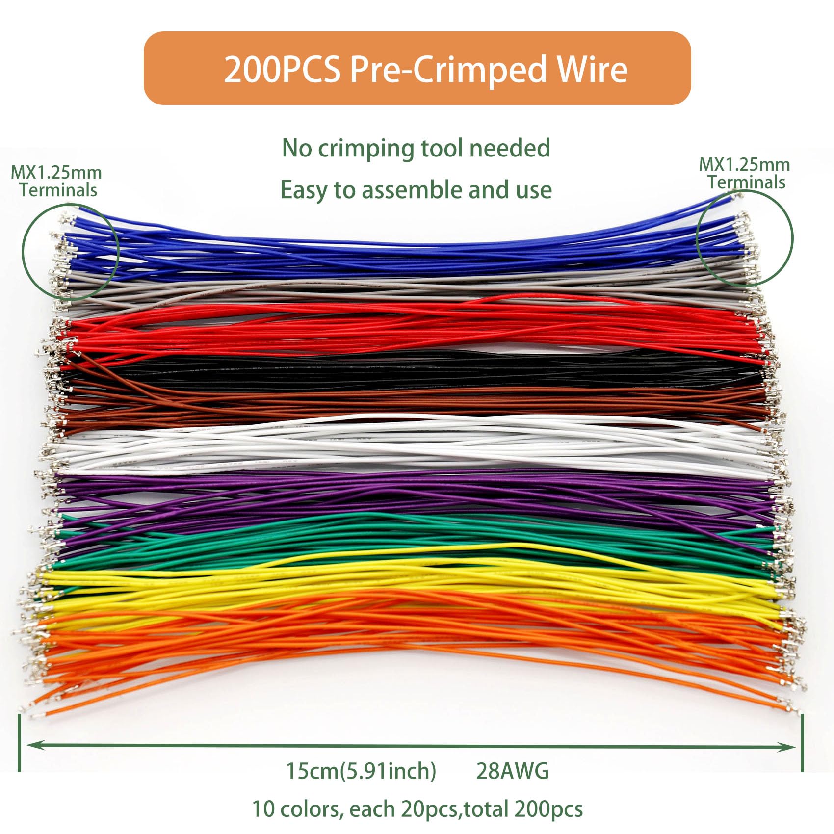 View compareDidamx 180Pcs Mx1.25Mm 2/3/4/5/6/7/8/9/10 Pin Connector Plug Kit And 200Pcs 10 Colors 15Cm Pre-Crimped Cables Compatible With Js