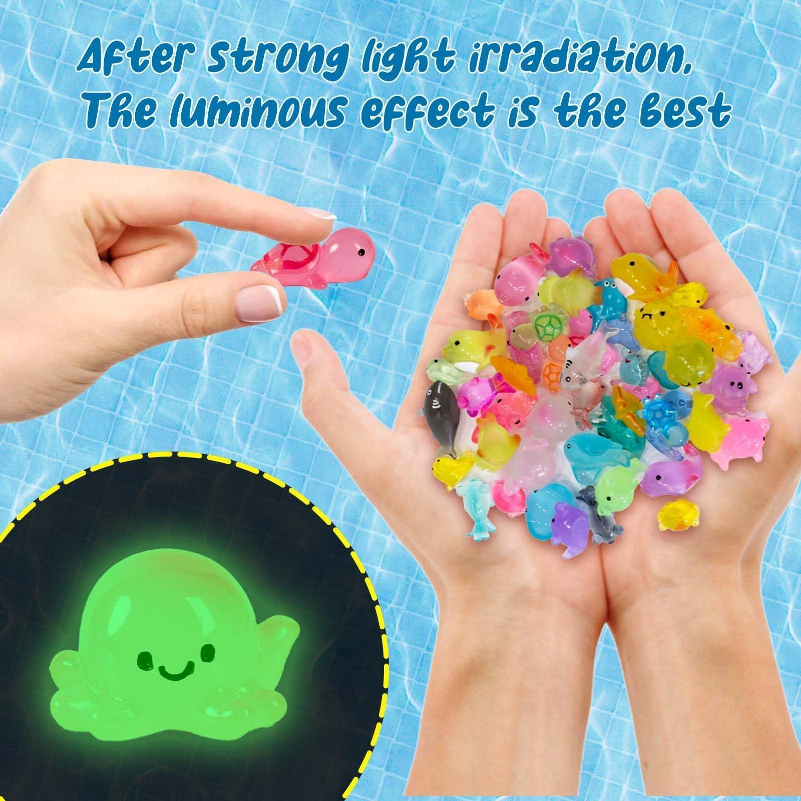 Fexia 50 Pcs Ocean Mini Resin Animals Tiny Aquariums Decor Glow In The Dark Resin Figures Luminous For Garden Landscape Sea Deco