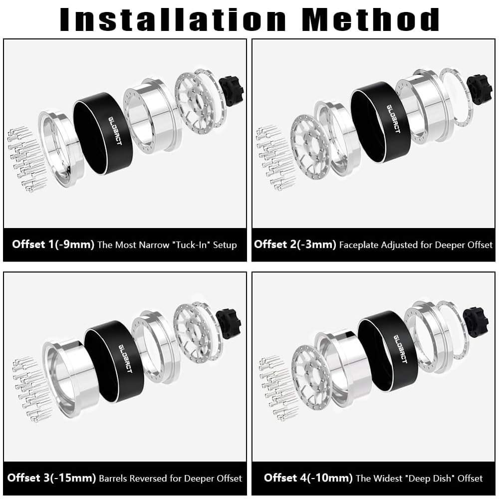 Globact Aluminum 1.9 Beadlock Wheel Rims Adjustable Offsets For Trx4 Trx6 Axial Scx10 Redcat Gen7 Gen8 Rc4Wd D90 1/10 Rc Crawler