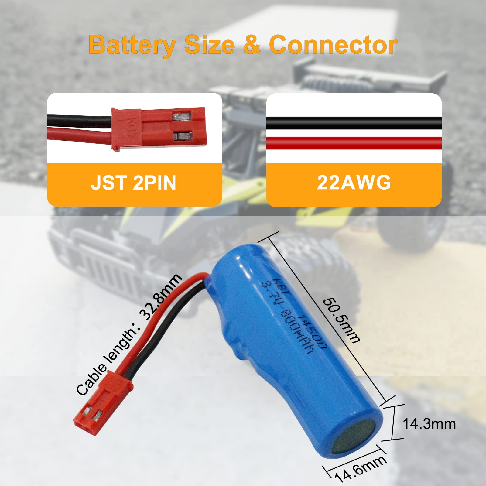 KBT 2Pack 3.7V 800mAh 10C High Drain Li-ion Rechargeable Battery with JST 2Pin Connector & USB Charging Cable for RC Car Toy RC