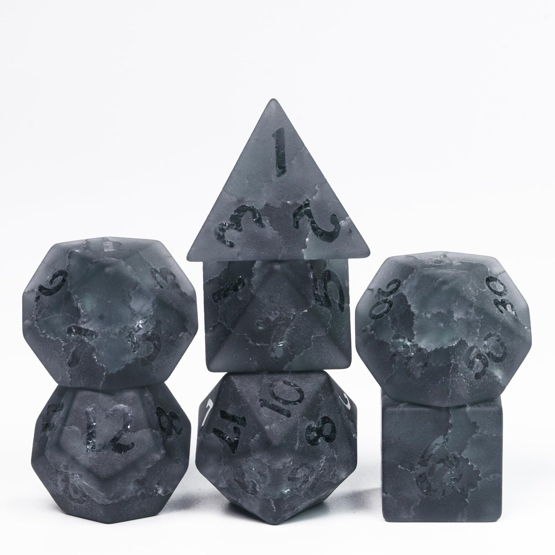 Udixi Black Cracked Glass Dice Set D&D, 7 Piece Glass Polyhedral Dnd Dice For Dungeons And Dragon Tabletop Game