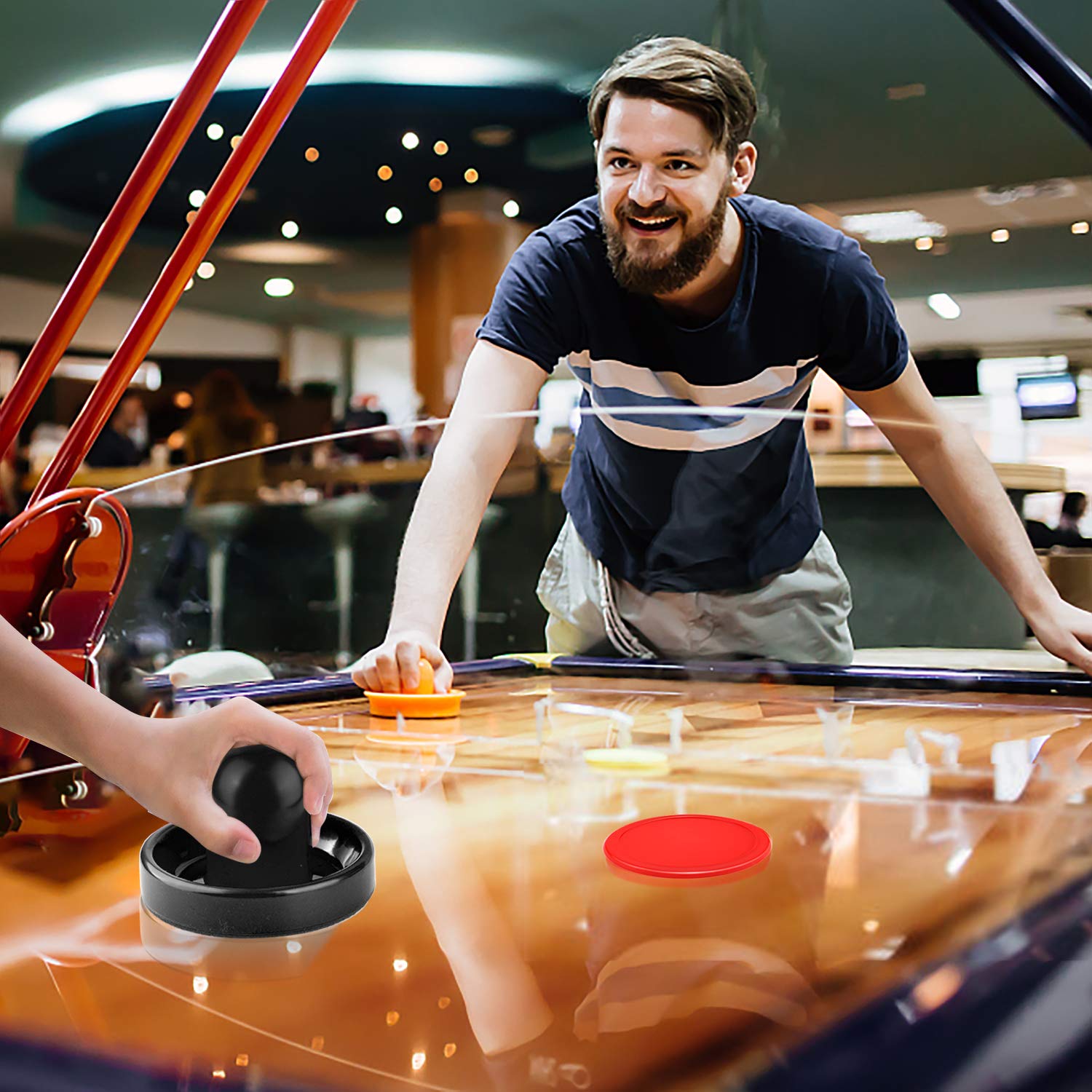 - Q: How do I use the air hockey pushers and pucks? A: To use the air hockey pushers and pucks, simply place the puck on the air hockey table and use the pusher to hit it towards your opponent's goal. Ensure you have a clear playing surface for the best gameplay.