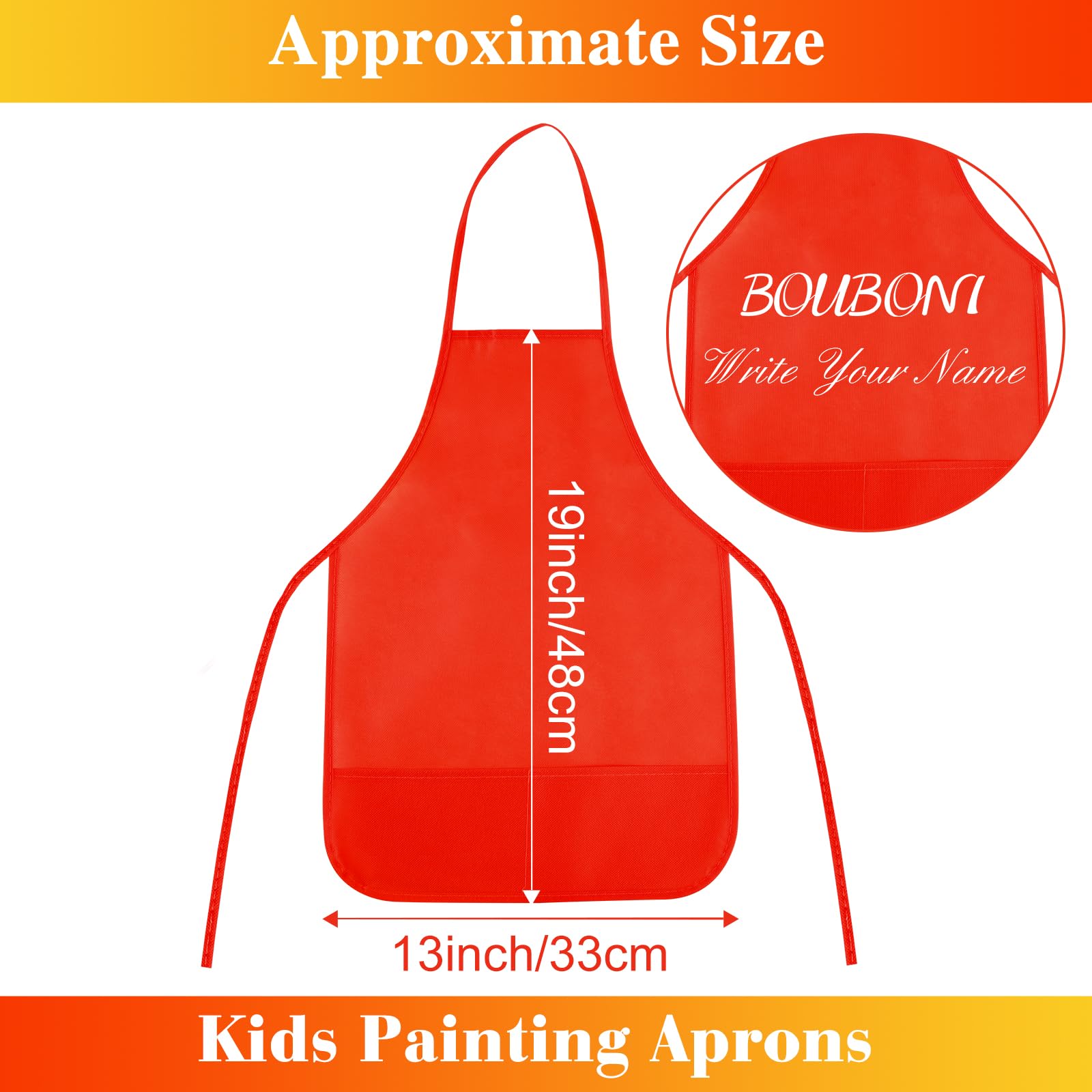 - Q: Are the aprons adjustable for different sizes? A: No, the aprons do not have adjustable features. They fit children aged three to seven years as designed.