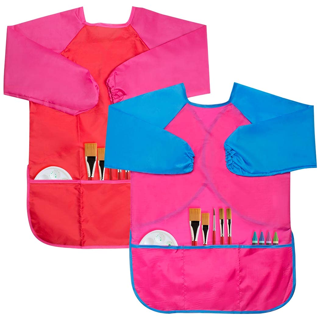 Cubaco 4 Pack Kids Art Smocks Children Waterproof Artist Painting Aprons With Long Sleeve And 3 Pockets For Age 3-8 Years Features: Brand:Cubaco The Aprons Is Very Soft And Light Weight(45G), Very Comfortable For Kids To Wear, Easy To Wash And Clean With Machine And Waterand All Sides Protect Your Baby To Painting,Baking, Art Craft,,Cooking At Any Time On Any Occasiondont Worry The Cloth Will Be Dirty Anymore Your Baby Will Be Enjoy And Love Them Specification: Material: Waterproof Polyester+ Nylon Size: 23 6 X 17 3 Inches Body Part Color: Red, Pink Light Weight: 45G, Very Soft And Light To Wear Packing Including: 1 A Red Art Smock, 1 A Pink Art Smock
