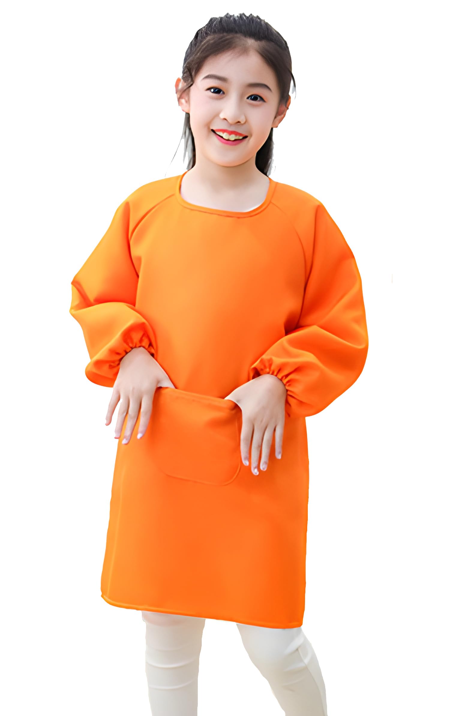 Lauthen.S Kids Long Sleeve Art Smocks Aprons For Crafting Painting Gardening And Eating 3 Size Available,For Kids Girls And Boys Age 2-12 Years. Ties Closure On The Back, Easy For Pulling It On And Off. Made Of Soft & Breathable Polyester With Fine Stitching, The Kids Won'T Feel Uncomfortable When Wearing This Smock. Package Includes: 1 X Orange Smock.