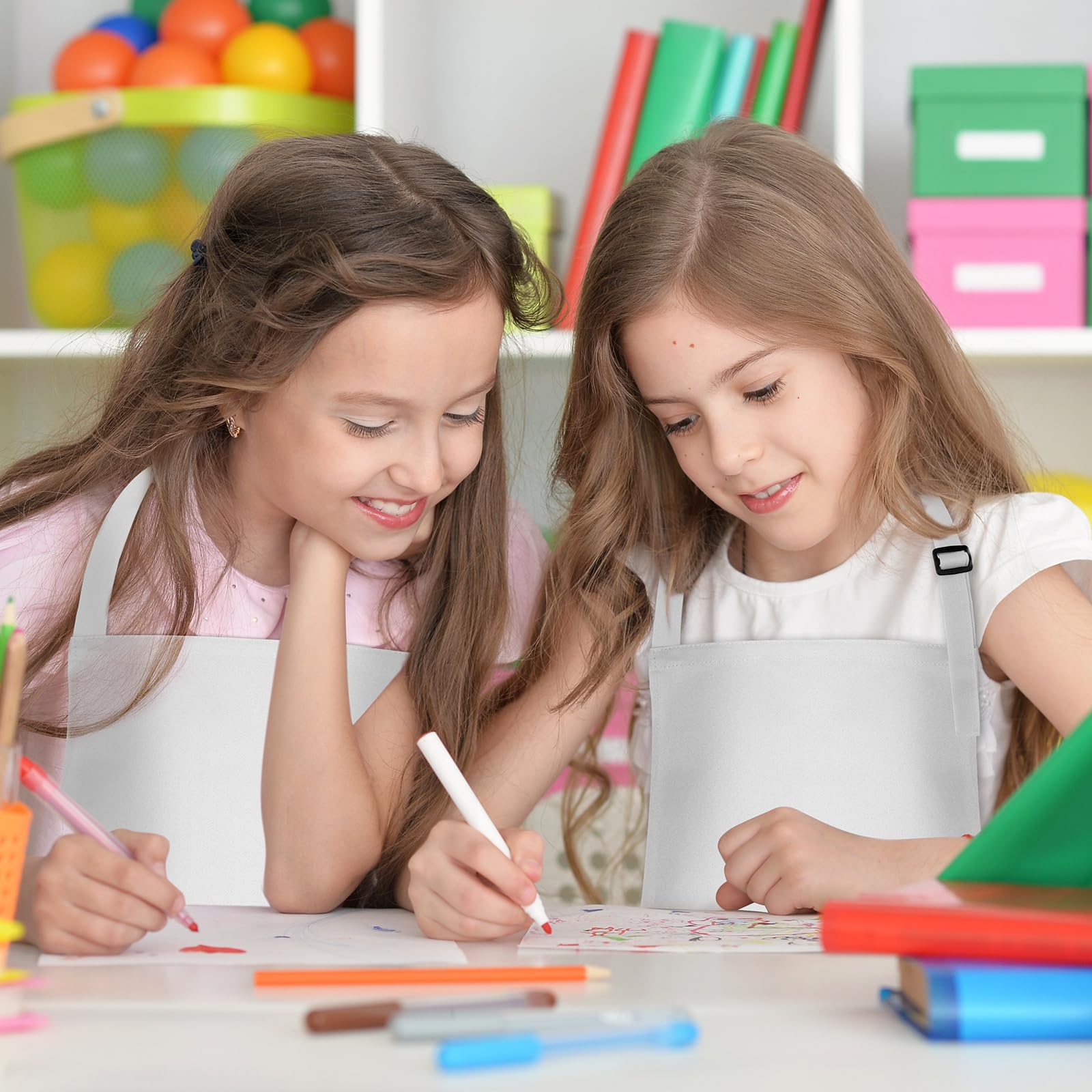 NACHLYNN 20 Pieces Adjustable Kids Apron With 2 Pockets for Painting, Cooking, Baking, Crafts Activity (White)