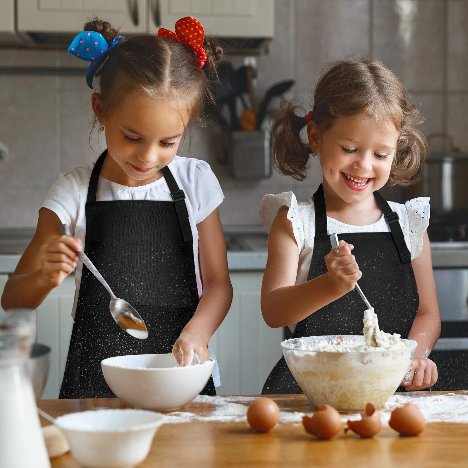 PLULON 15 Pieces Kids Apron Adjustable Children Aprons Kids Painting Kitchen Apron for Boys and Girls Material: polyester Color: black Size: approx. 46 x 61cm/ 18 x 24inches Package Includes: 15 x Kids Aprons Notice: PLEASE CHECK THE SIZE BEFORE PURCHASING.
