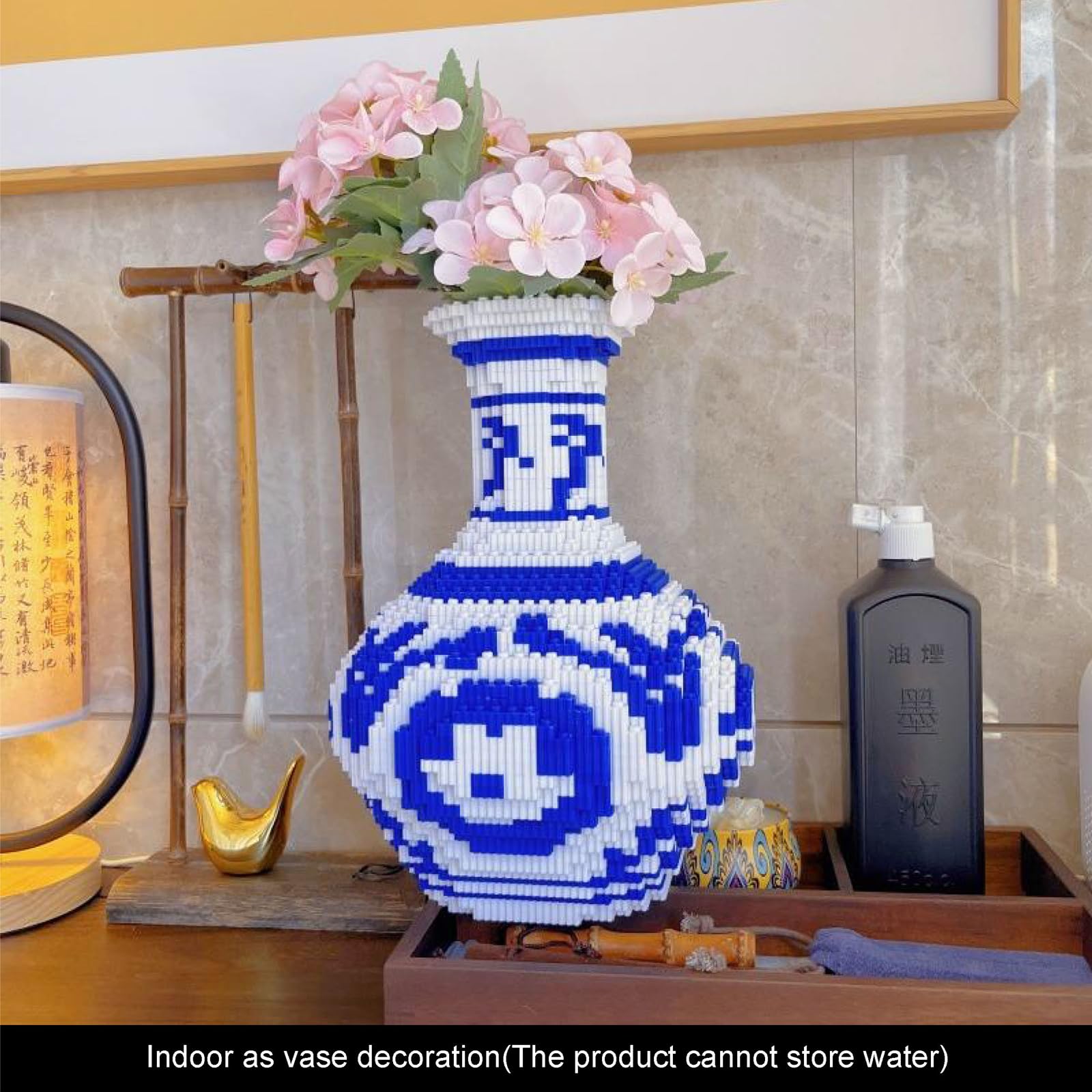 Blue and White Vase Micro Building Blocks Set,Compatible with Lego Flower Set,Arts and Crafts for Adults with Collection Value,