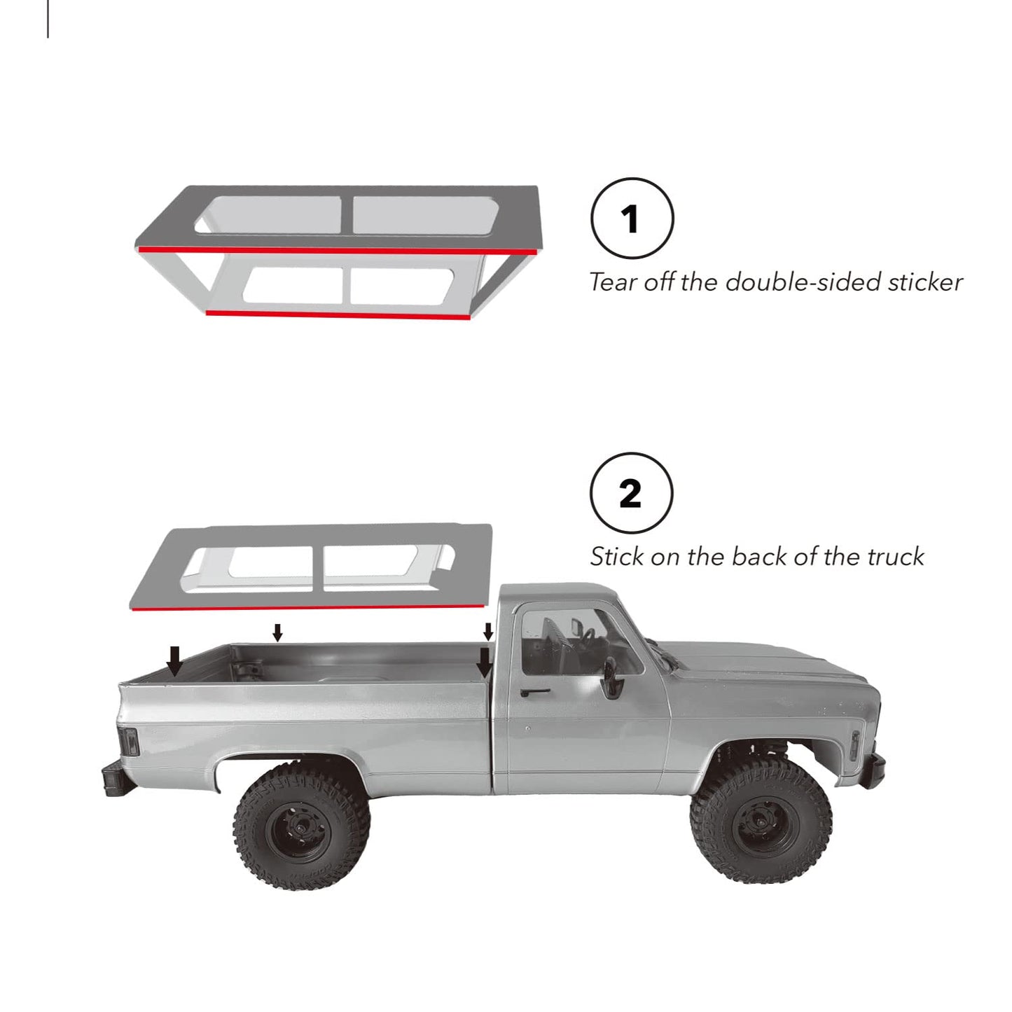 - Q: How do I install the Canopy Topper on my RC truck? A: The installation of the Canopy Topper is straightforward and does not require any screws. It comes with residue-free double-sided tape, allowing for easy application. Simply clean the surface of your truck, peel off the tape backing, and press the topper into place.