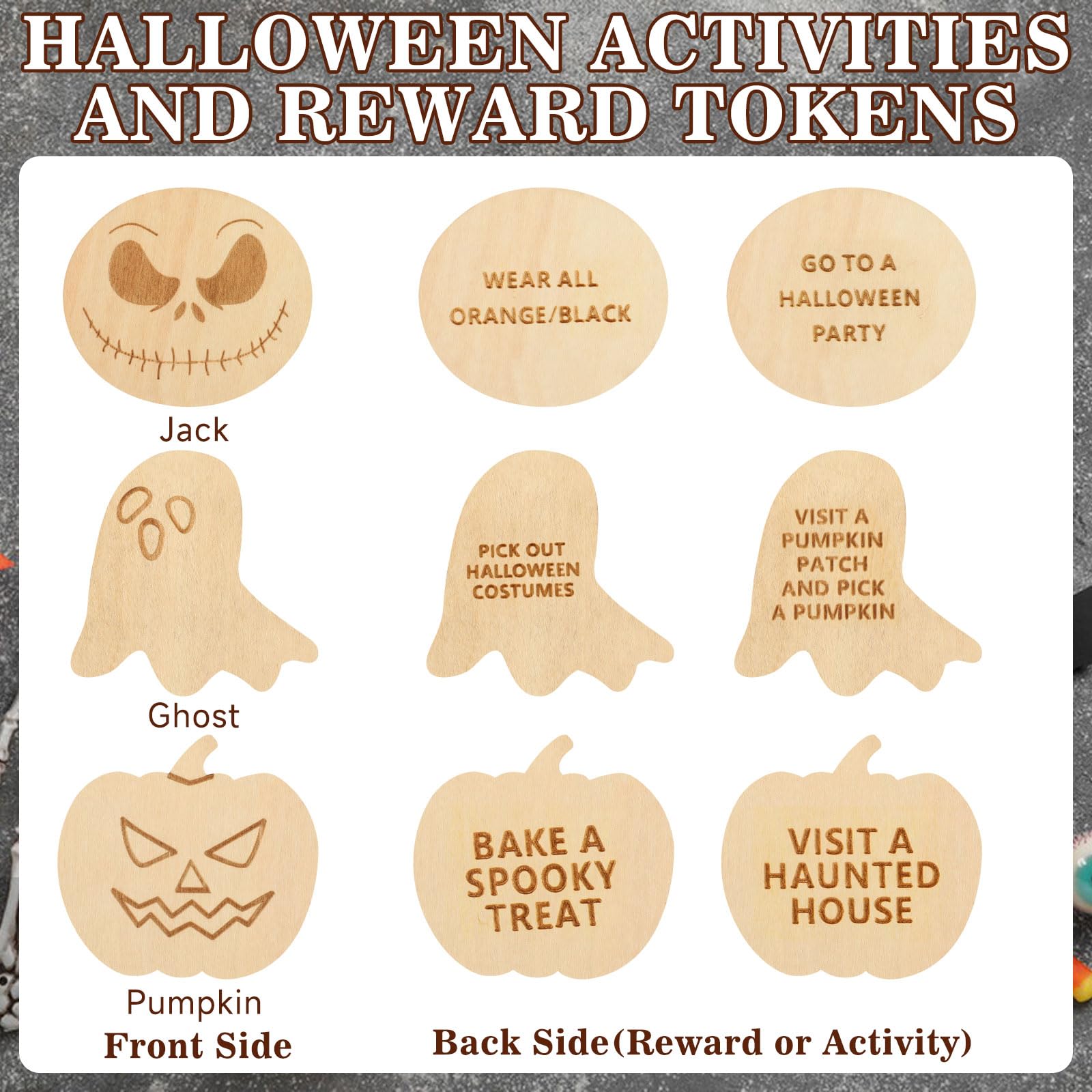 Cypherx Halloween Wood Crafts For Kids, Halloween Treasure Hunt Tokens For Kids, Halloween Activity And Reward Wood Tokens, Diy