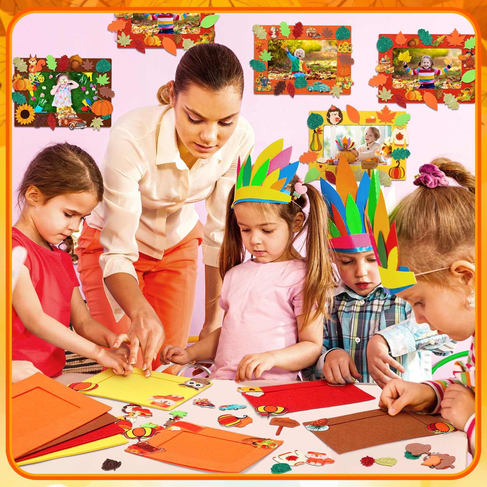 View compareFerraycle 232 Pcs Thanksgiving DIY Picture Frames Craft Kit Fall Felt Photo Frames with Leaves Pumpkin Harvest Crafts with Foam