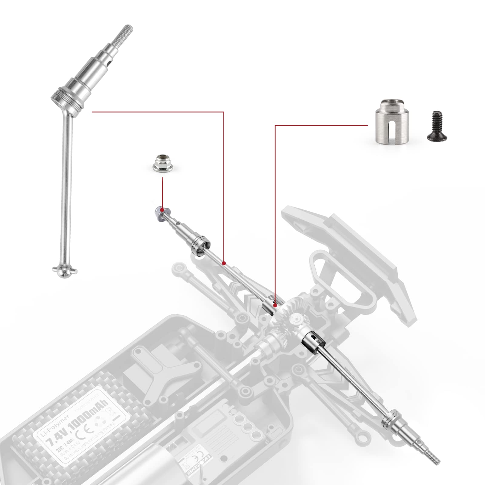 RC Cars Spare Parts Metal Front Universal Shafts+ Metal Diff. Cups+Pins+Lock Nut M3 Apply to 2021 New Version 18859A & 18858 & 18859 & 18868