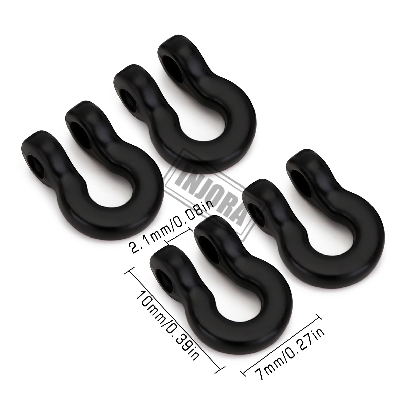 - Q: What are the dimensions of the INJORA Metal Tow Hook? A: Each tow hook measures 7x10mm (approximately 0.27x0.39 inches), making them suitable for mini RC crawler applications.