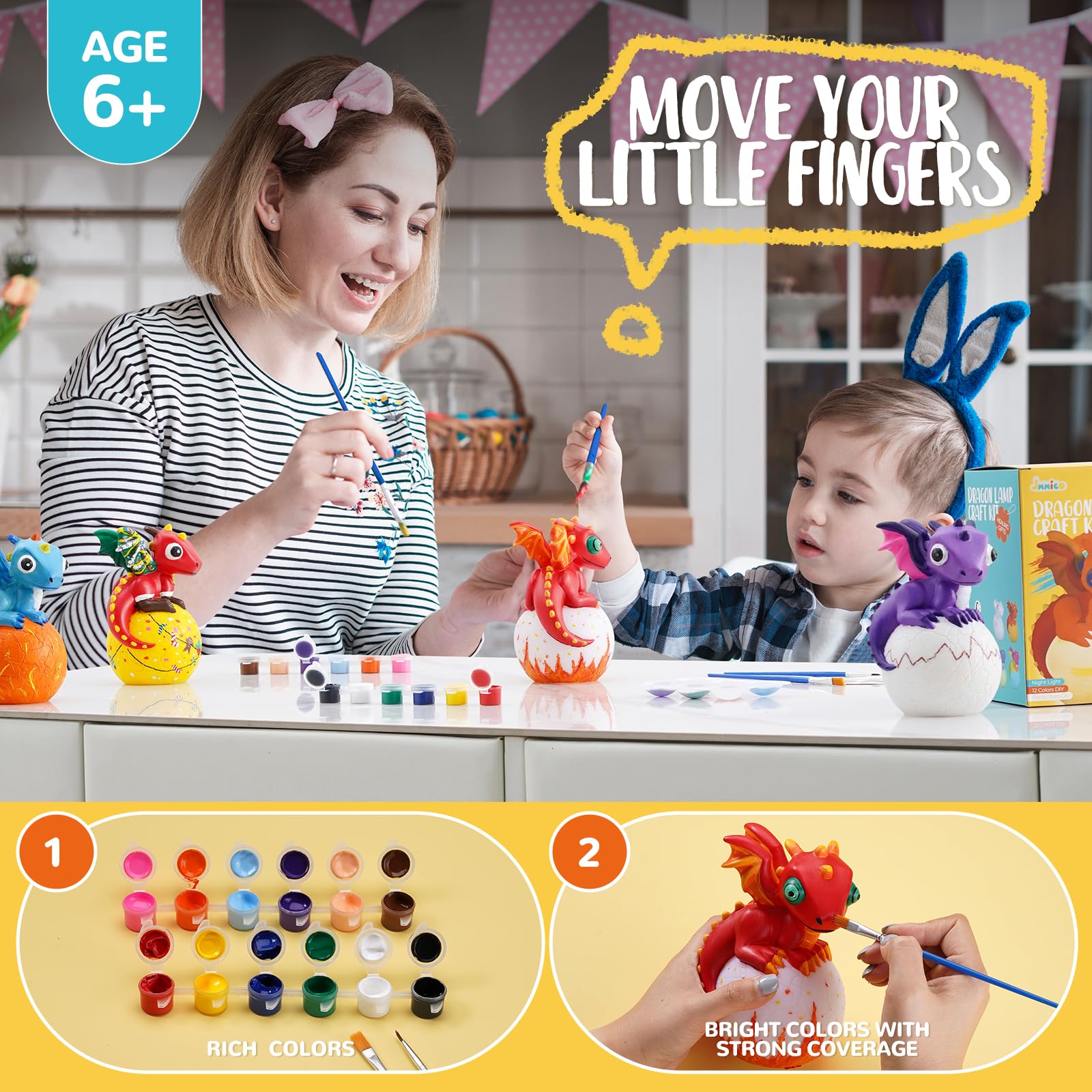 JMMICO Paint Your Own Dragon Lamp Craft Kit, DIY 3D Craft Dragon Night Light with 12 Colors Paint, Arts and Crafts for Kids Ages