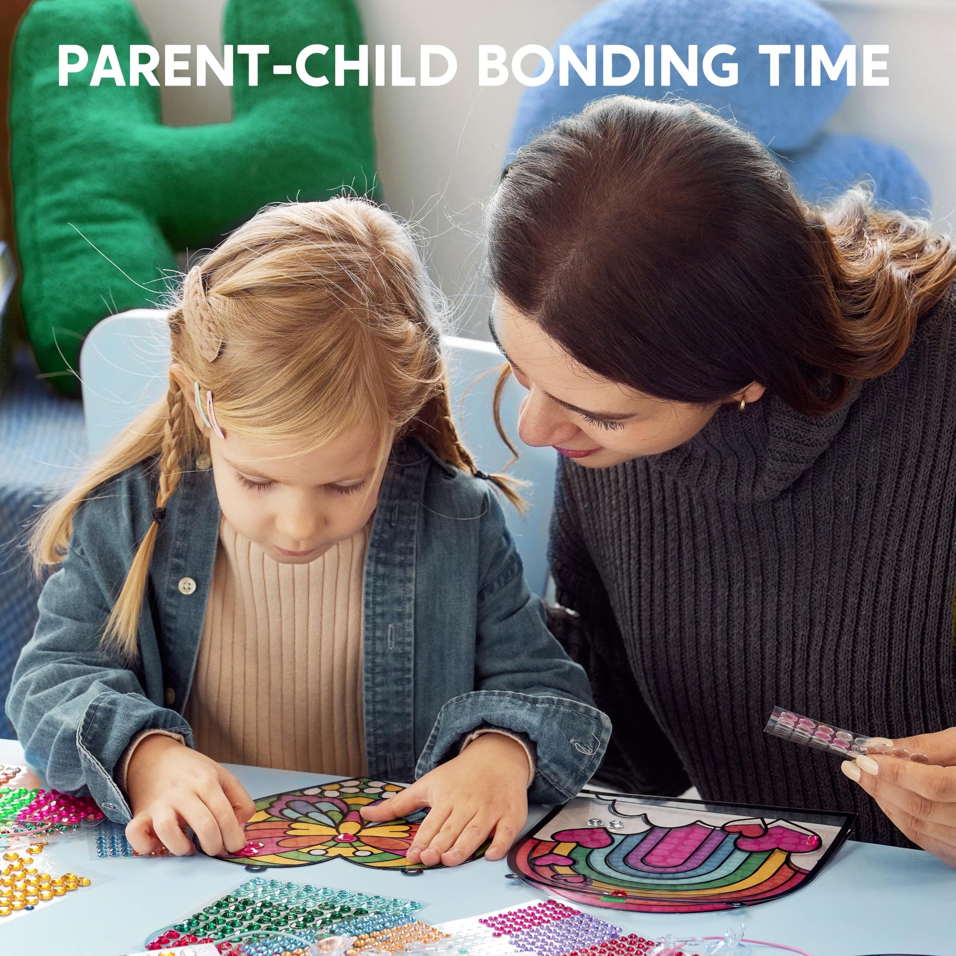 Klever Kits 4PCS Window Art Suncatcher Kits, Fun Gem Painting Kits, Diamond Art and Crafts for Boys Girls, Great Crafts Gift for