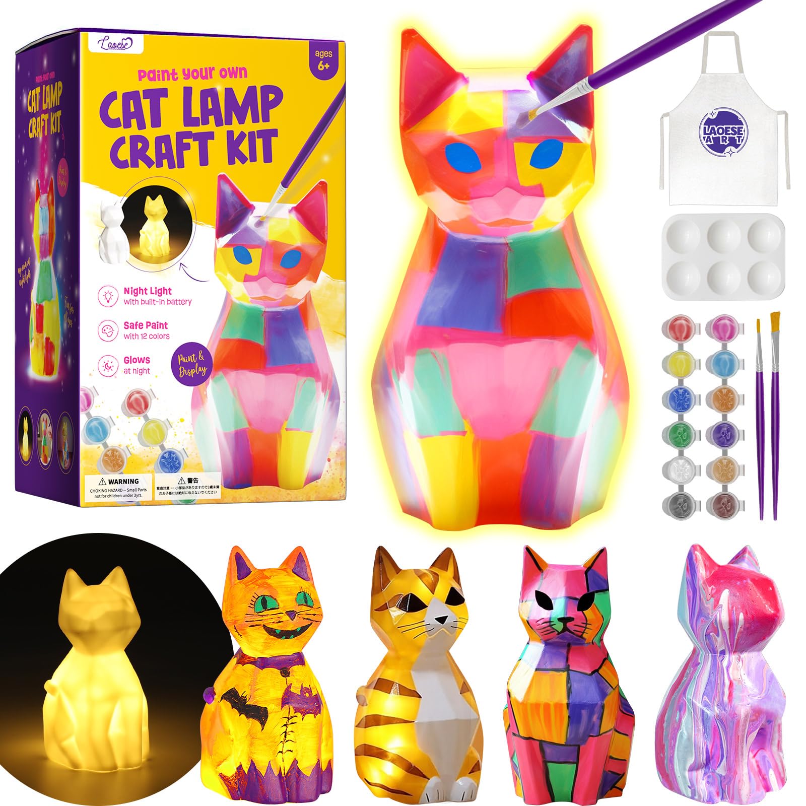 Laoese Paint Your Own Cat Lamp Kit, Art Supplies Arts & Crafts Kit, Painting Kit For Kids 6-12, Arts And Crafts For Kids Ages 8-