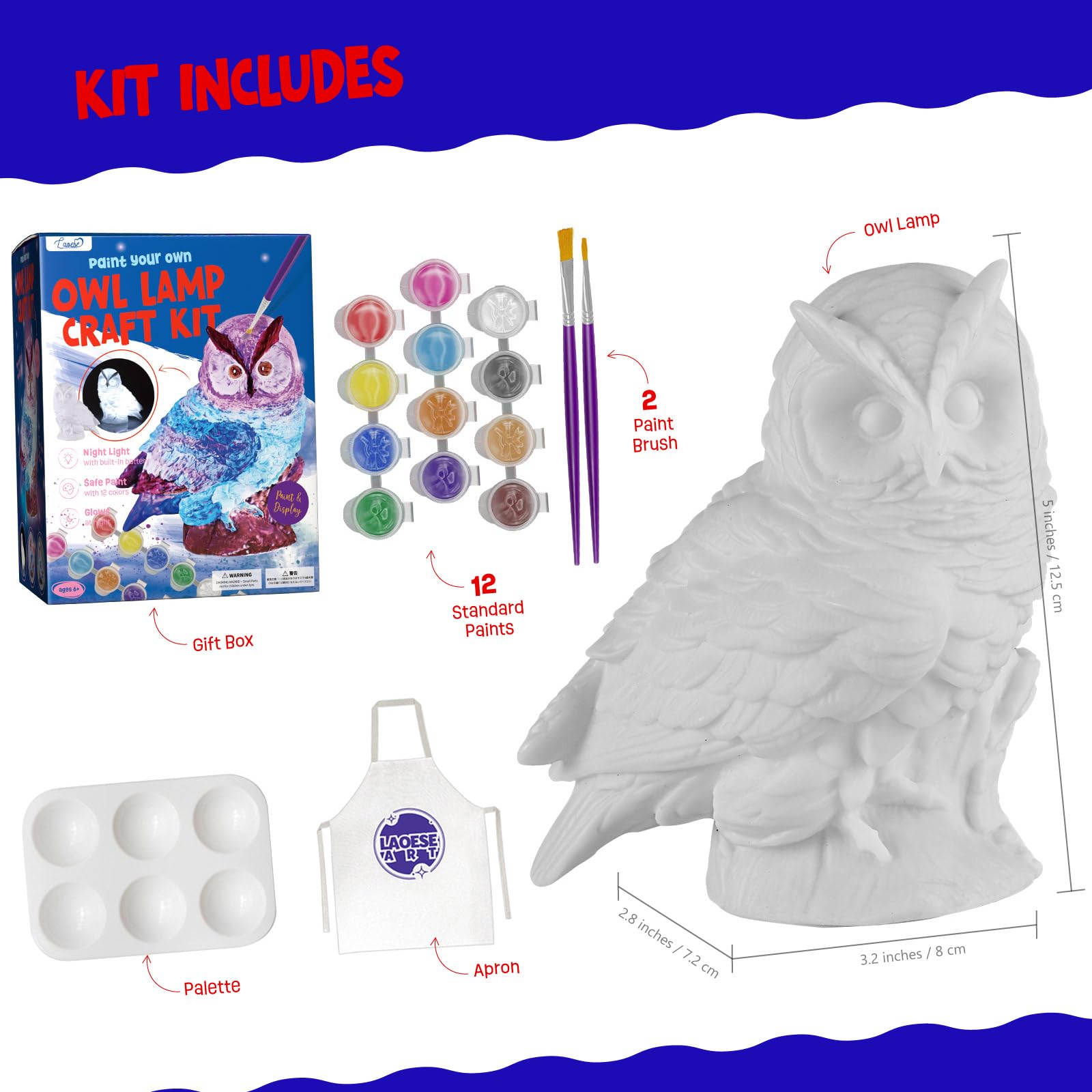Laoese Paint Your Own Owl Lamp Kit, Art Supplies Arts & Crafts Kit, Painting Kit For Kids 6-12, Arts And Crafts For Kids Ages 8-