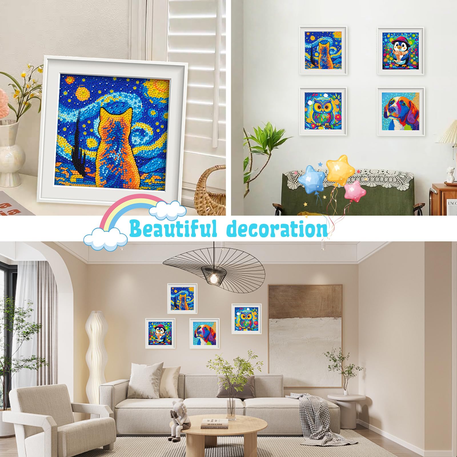 Libfx Diamond Art Kits For Kids 4 Pcs Diamond Art For Kids Girls Boys Beginners Arts And Crafts For Kids Ages 8-12 (Lion-Elephan
