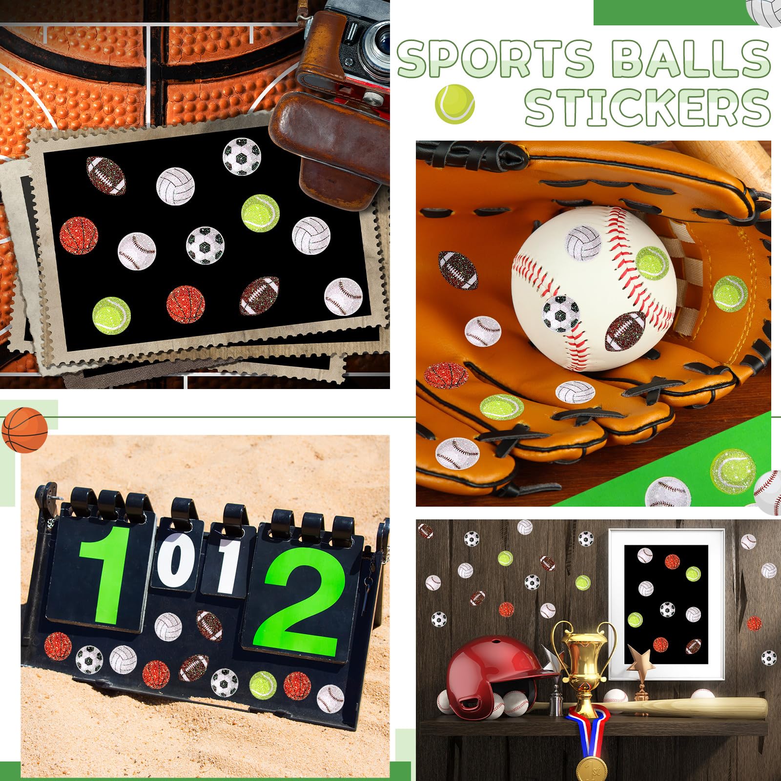 - Q: What size are the individual sport stickers? A: Each mini sport sticker measures approximately 1.2 cm (0.47 inches) in diameter, making them perfect for incentive charts and various crafts.