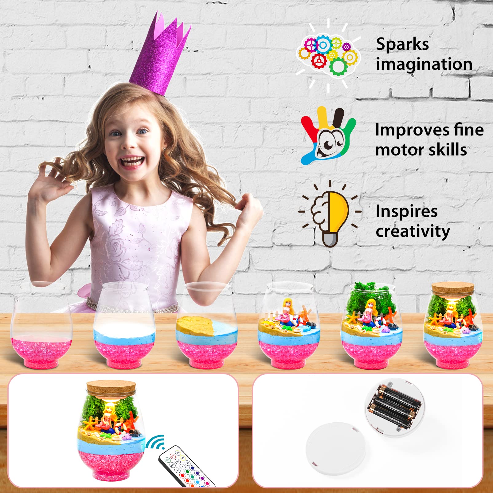 Magiclub Diy Light-Up Mermaid Terrarium Kit For Kids,Remote Mermaid Birthday Gifts Toy For Girls,Mermaid Craft Kit,Arts & Crafts Mermaid Gifts For Girls Age 4 5 6 7 8-12 Years Old,Bedroom Decor