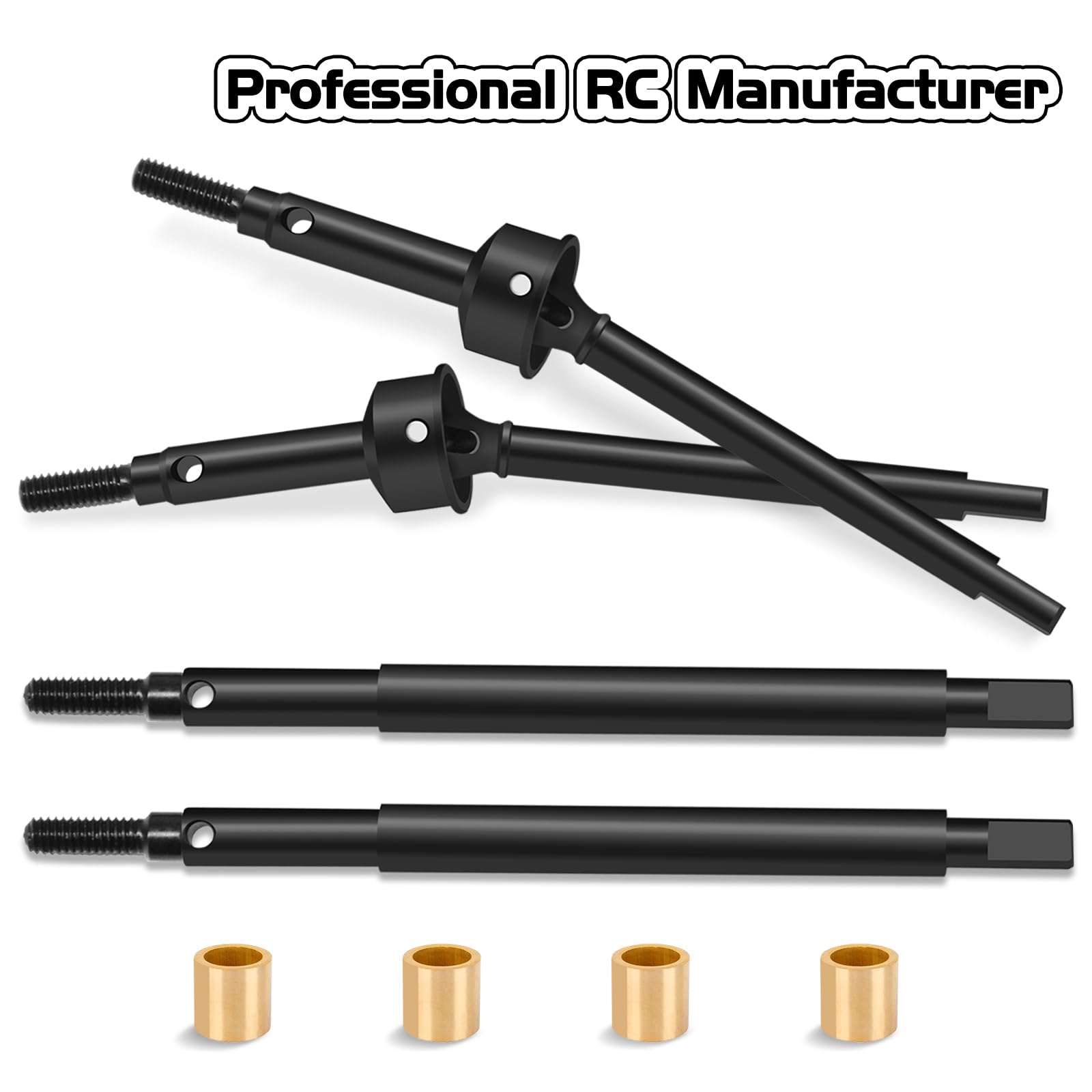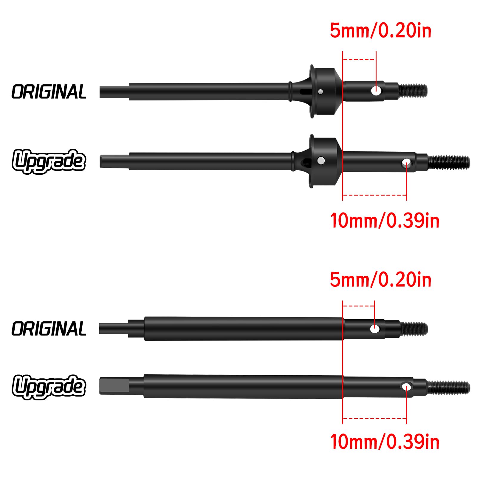 Specification: Material: Steel Color: Black Extened: +5mm Quantity: 4Pcs Package List: 1 * Front Axle Drive Shaft Set 1 * Rear Axle Drive Shaft Set 4 * Extension Adapter