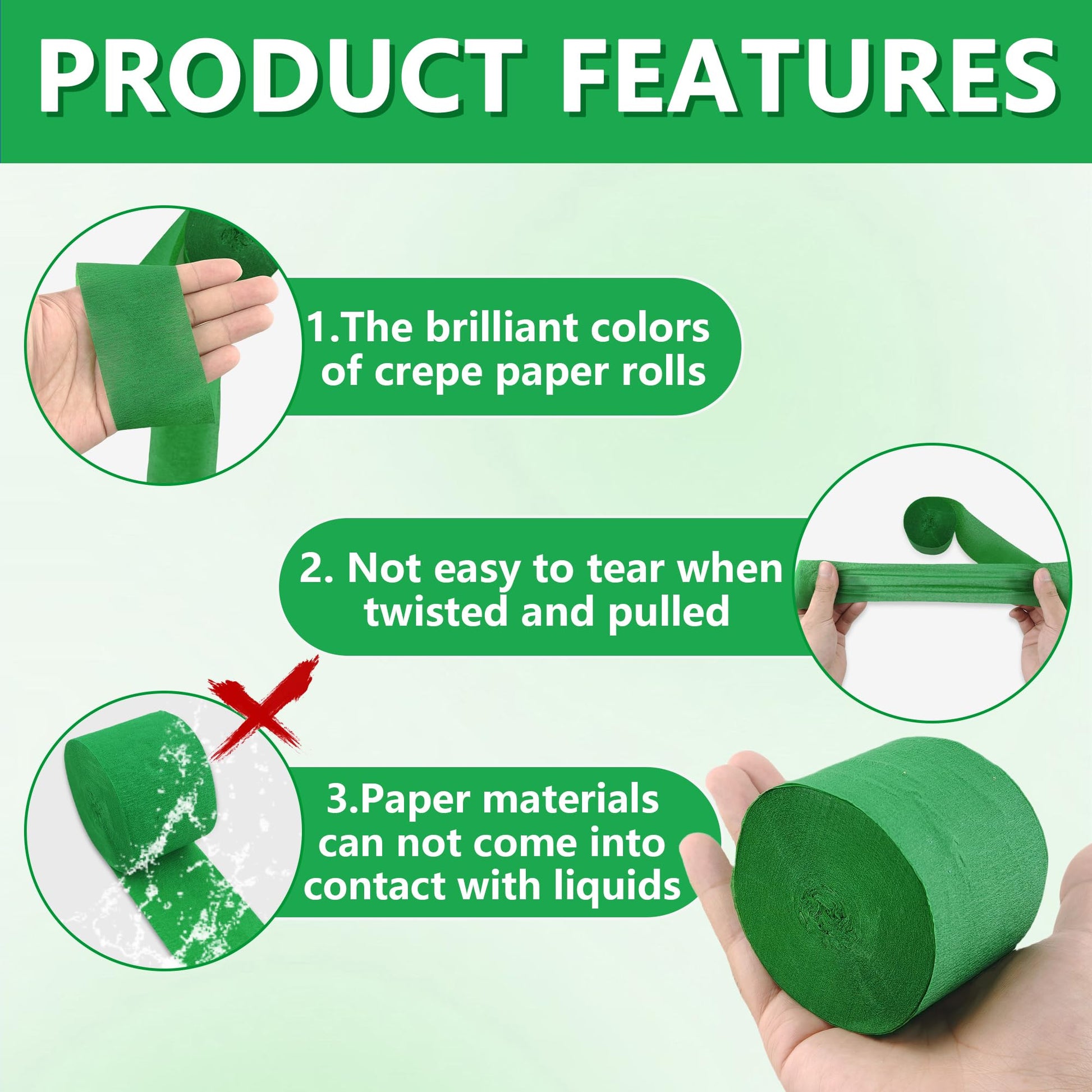 Oun Nana Crepe Paper Streamers 6 Rolls Green 2.2 Inches 738 Feet, Party Supplies DIY Crafts for Birthday, Wedding, Baby Shower,