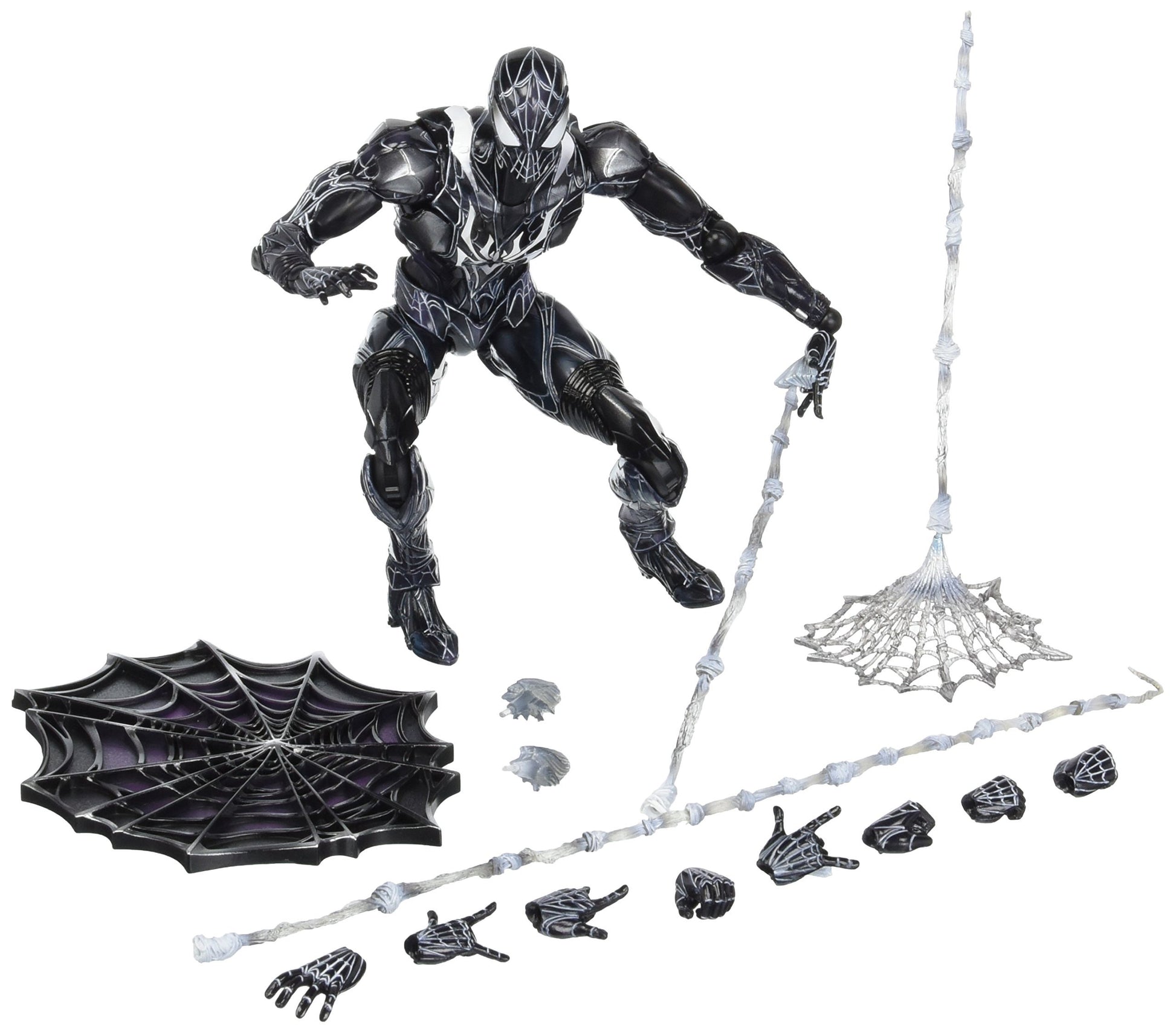 - Q: What are the key features of the Square Enix Spider-Man Play Arts Kai Action Figure? A: The Square Enix Spider-Man Play Arts Kai Action Figure showcases an original interpretation of the character, featuring a unique costume design in subtle shades of black. It offers a wide range of motion in joints, allowing for numerous posing options, and comes with interchangeable hand pieces for customizable display.