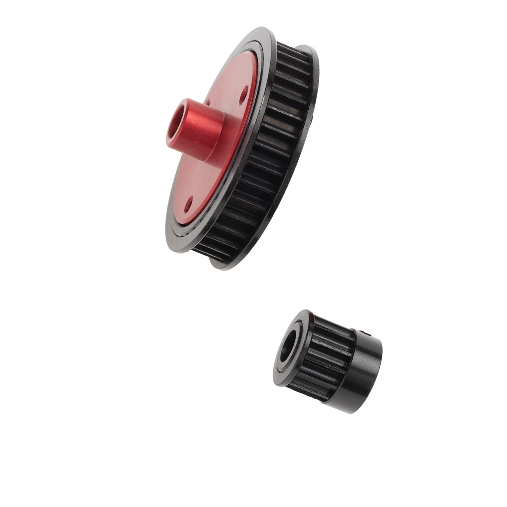 - Q: What are the specifications of the gear system, such as gear ratio and belt length? A: The gear ratio of the Treehobby Belt Drive Transmission Gears System is 13:36, and the belt length measures 132mm. It also offers an optional small gear aperture of 3.2mm or 5mm.