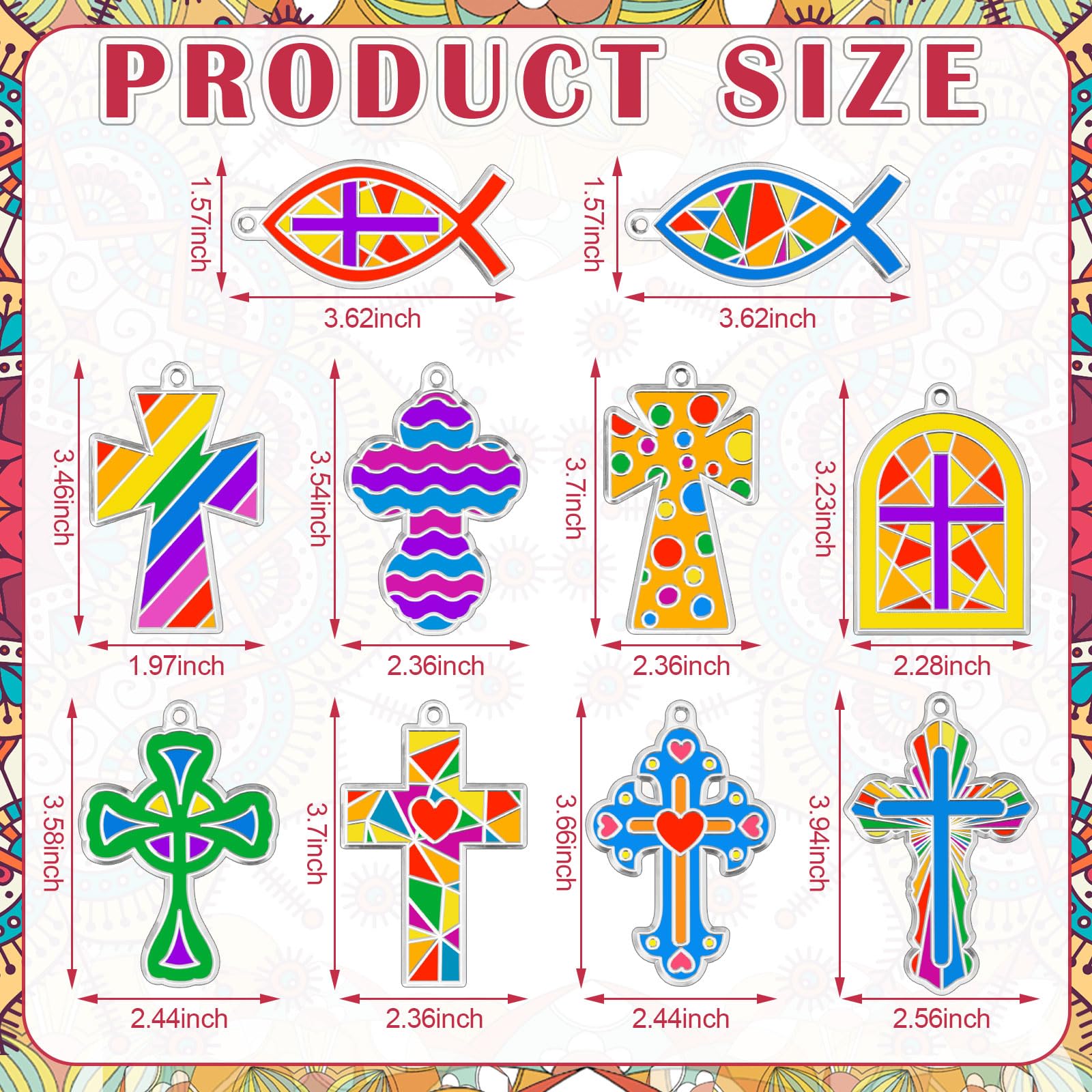 WinnerWhy 30 Sets Cross Suncatchers Window Art Kits, Christian DIY Sun Catchers Bulk Religious Crafts Paint Your Own Cross Windo