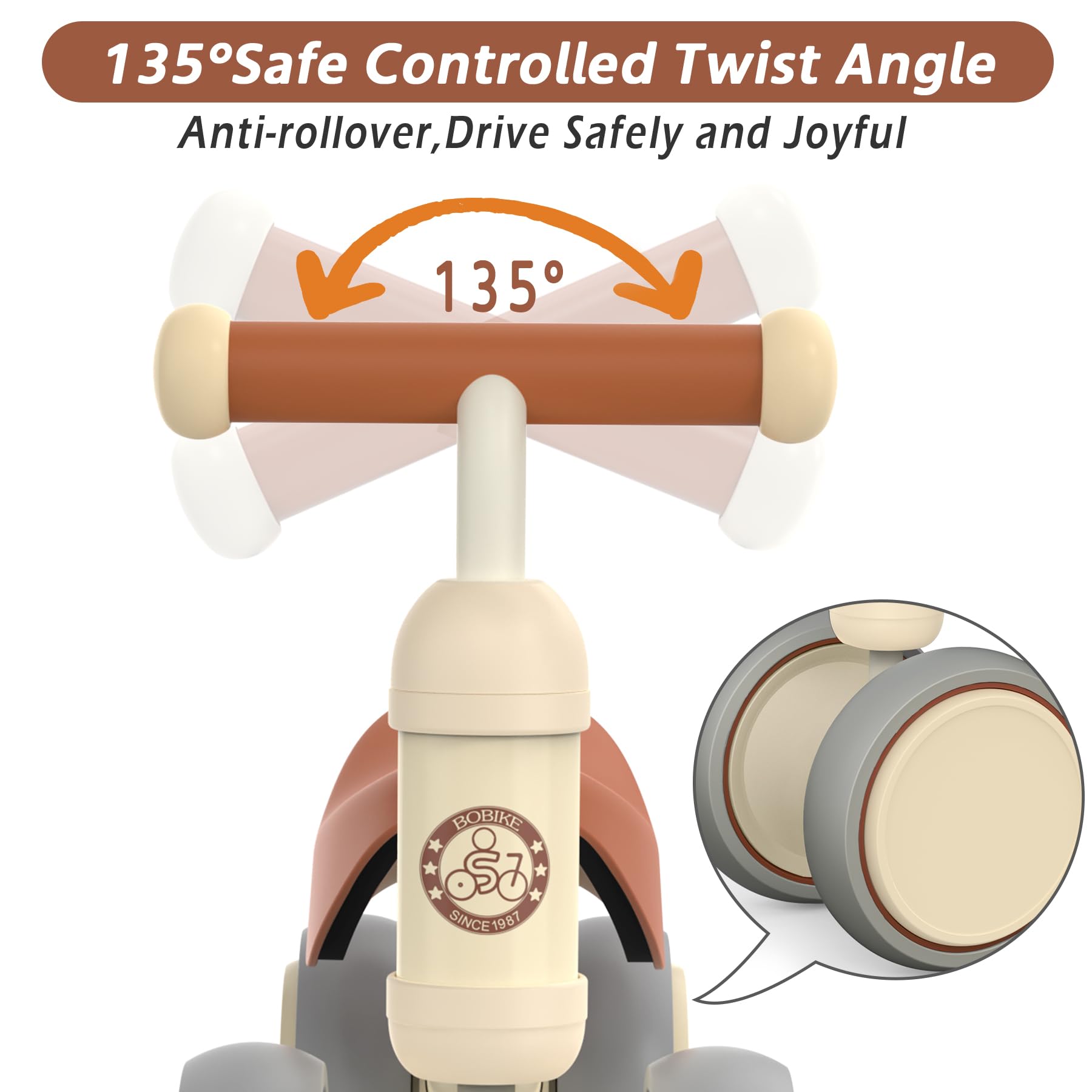 - Q: What is the steering limit on the Baby Balance Bike? A: The Baby Balance Bike features a steering limit of one hundred thirty-five degrees to prevent side falls.