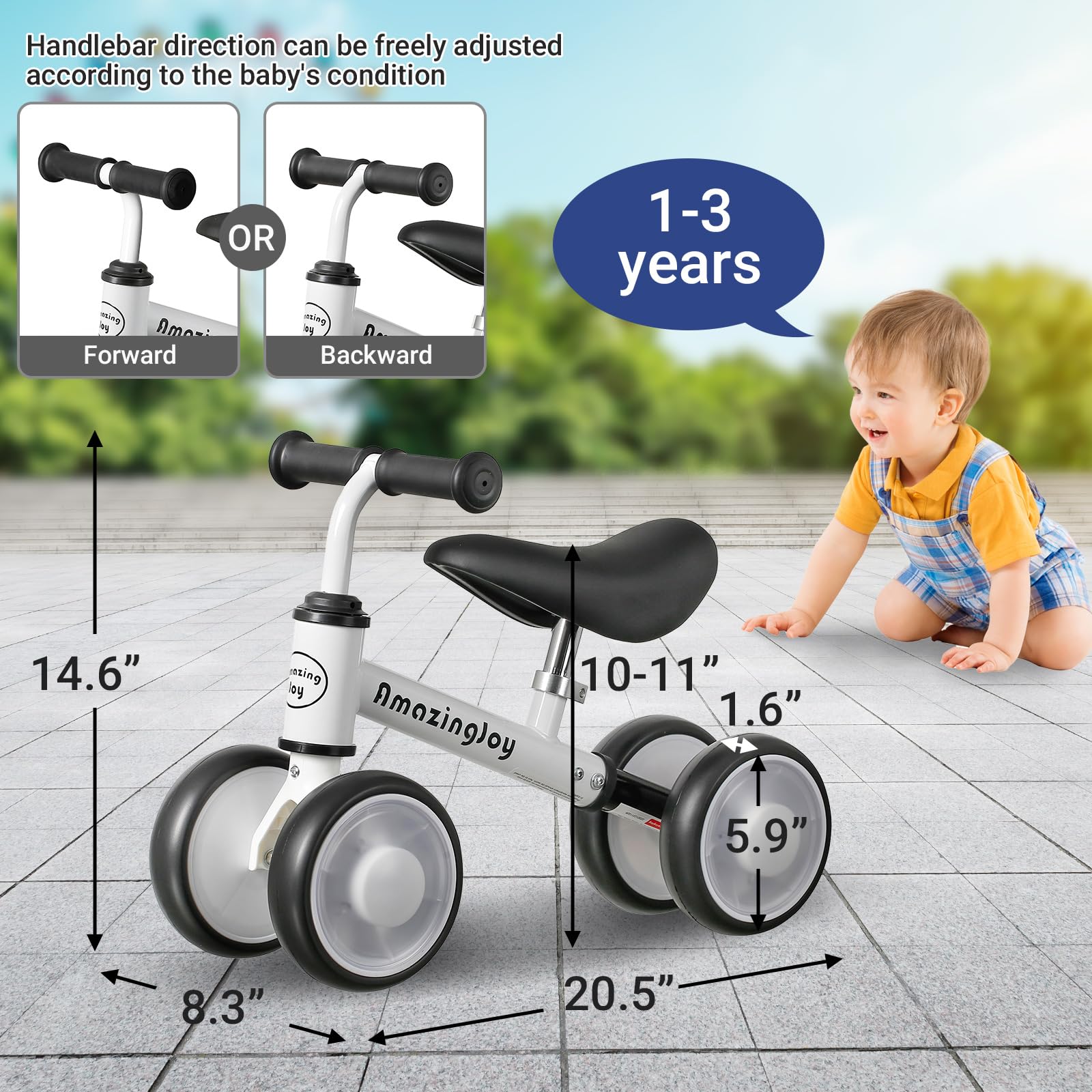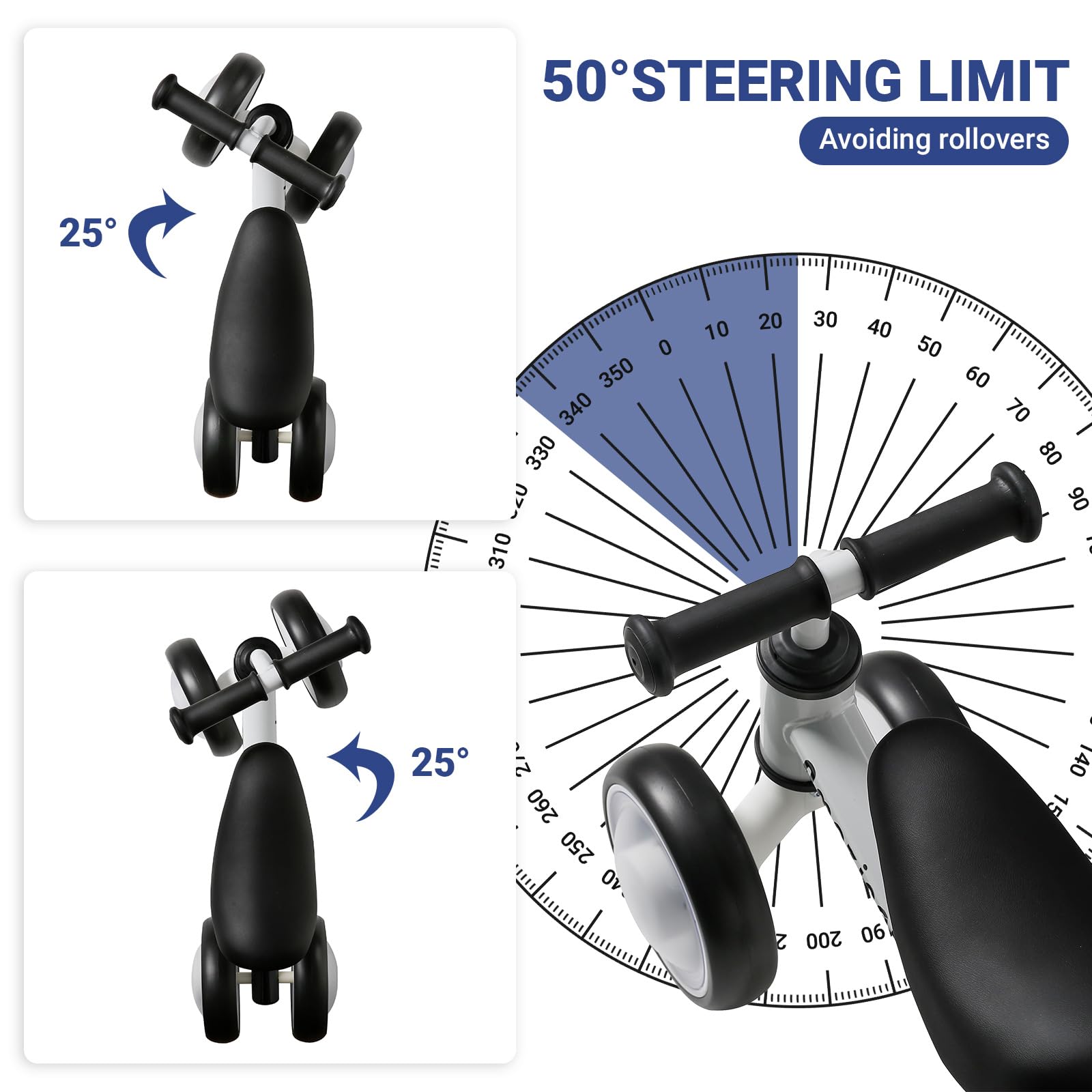 This baby balance bike 1 year old is specially designed for 1 year old boys and girls to exercise their sense of balance and control ability. With 135 restricted turning device, to protect the childs safety, the baby balance bike toys is lightweight and easy to carry, can be assembled in 3 minutes. The toddler toys bicycle has high titanium steel frame and handlebar durable, soft and comfortable height-adjustable seat, the handle of the bike for 1 year old cover using edible safety materials, fully enclosed colorful. The fully enclosed colorful illuminated tires prevent your toddlers feet from getting hurt and enhance your childs training fun, shining brightly in the night. The mute tires of the baby walker bike 1 year old are non-slip and reduce noise even when sliding indoors.