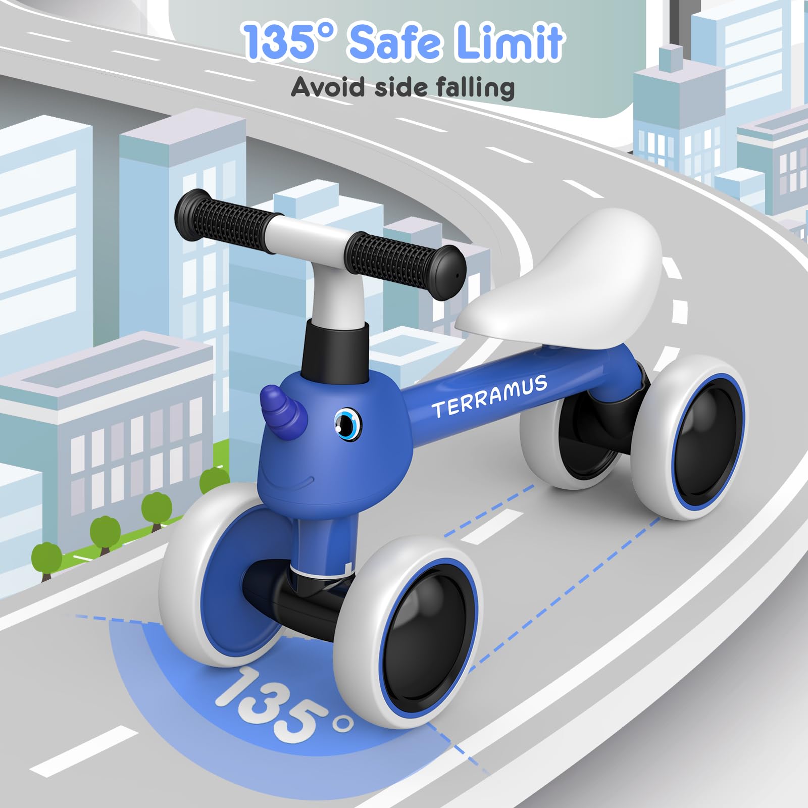 TERRAMUS Baby Balance Bike for 1 Year Old Gifts Boys Girls - Toys for 12-24 Month Toddler Balance Bike, No Pedal 4 Wheels Infant