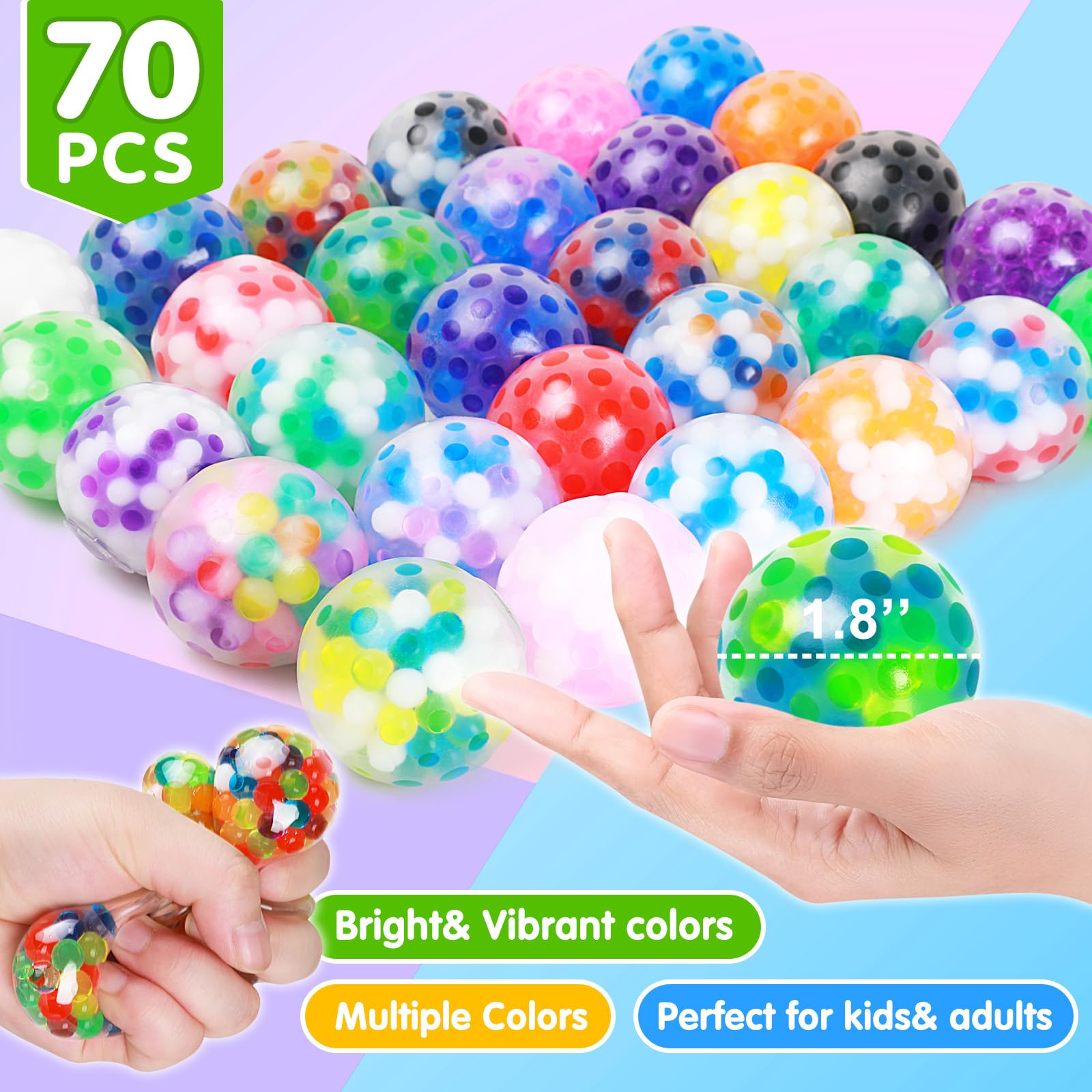 70Pcs Stress Balls-Squishy Stress Balls Bulk-Treasure Box Toys-Fidgets Prizes Bulk-Sensory Balls-Stress Balls For Adults -Classr