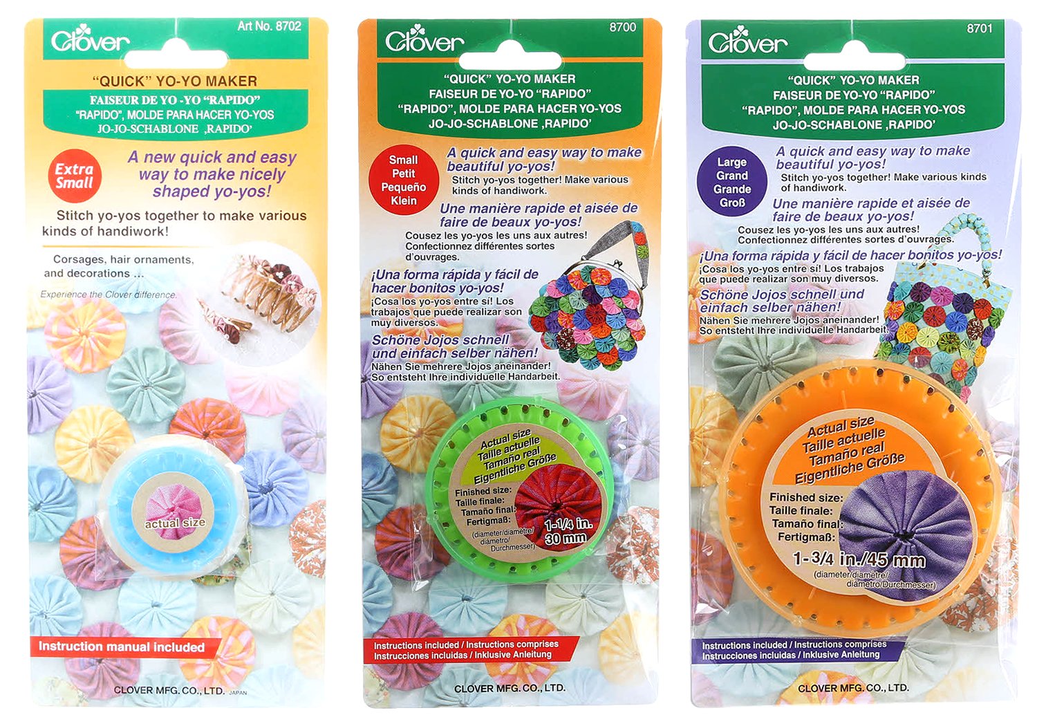 - Q: What sizes of yo-yos can I create with this bundle? A: This bundle includes three quick yo-yo makers that allow you to create extra small yo-yos measuring 3/4 inches, small yo-yos measuring 1.25 inches, and large yo-yos measuring 1.75 inches.