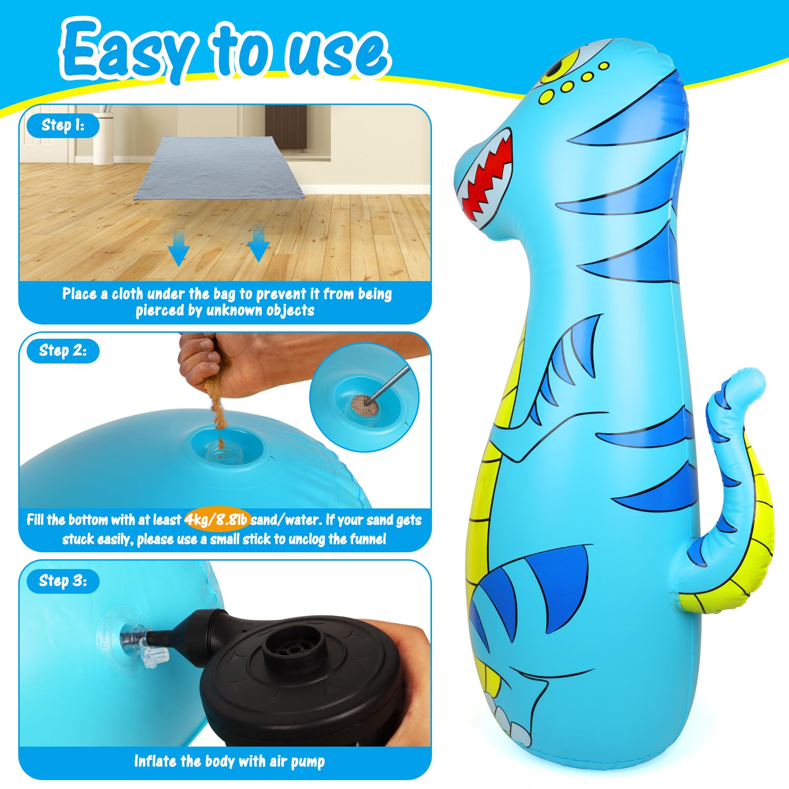 Eqard Punching Bag For Kids 47'' Inflatable Dinosaur Bop Bag With Thicker Material Instant Bounce Back With Boxing Gloves Karate