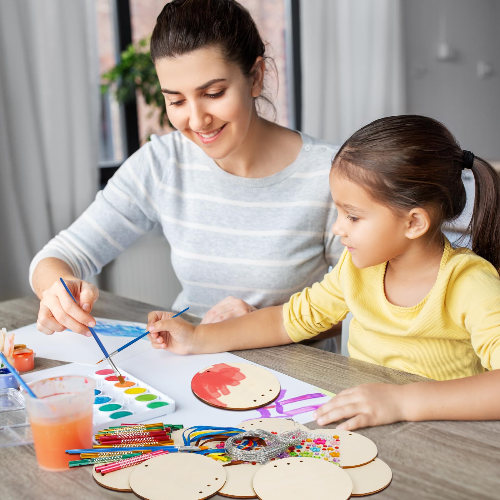Size: As The Picture Shows Package Includes: 9X Unfinished Wooden Round Cutouts,27X Wind Chime Tubes((3 Color,Each Of 9)2 X Paiting Brushes 9 X 1M Silver Wire 9 X Color Rope 1 X Rhinestone Sticker How To Play The Wind Chime Kit 1.Open All Accessories 2.Diy Decorate Use Paint Or Color Pen(There No Paint Included) And Rhinestone Sticker 3.Cut The Silver Wire To Appropriate Length And Thread It Into The Wind Chime Tubes Hole , Then Through The Hole Under The Wooden Ball4.Use The Colored Rope Through The Hole Above The Wooden Ball5.The Unique Wind Chime Craft Kit Is Completed, It Can Be Hung On The Door, Tree,Wall, Window, Porch, Tree, Any Place You Like,Wait For The Wind To Blow Or Take It To Play On Hands. Make You Halloween Craft Kit Our Wooden Piece Is A Circle, Or You Can Design Different Holiday Themed Wind Chimes With Different Festivals, Use Your Imagination And Create To Your Heart'S Content!The Wind Chime Craft For Kids Easy To Build And Paint. Great For Hand-Eye Coordination, Creative Expression, Fine Motor Skills, Pretend Play, And Self-Confidence. This Diy Wooden Wind Chimes Suitable For Craft For Kids,Each Wind Chime Kits For Children With The Imagination Is Unique, They Can Be Used To Decorate Our Rooms And Yards, Become A Great Craft Landscape. You Can Give These Diy Wind Chime Kits As Christmas Party,Birthdays Party, Or Other Holidays Gifts It Is Also A S Chool Tasks, Class Rewards, Craft Group Activities, And So On, Suitable For Kids Wind Chime Hanging Ornament.