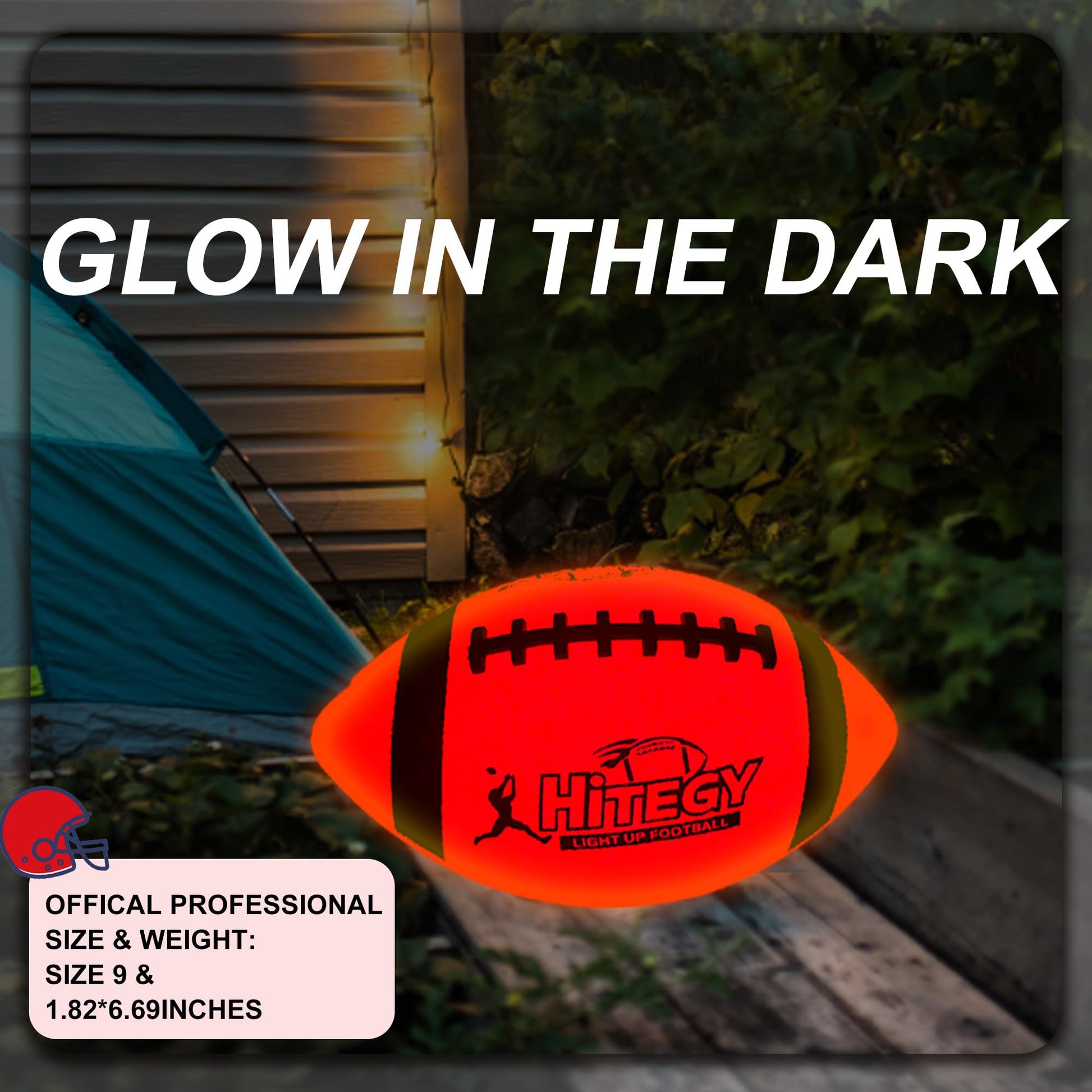 Hitegy Rechargeable Glow In The Dark Football - Usb Charging, Official Size 6, Light Up With Every Catch And Throw, Includes Pum