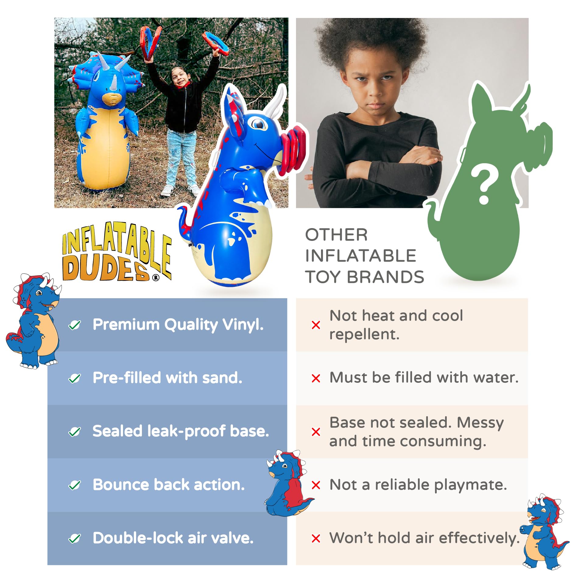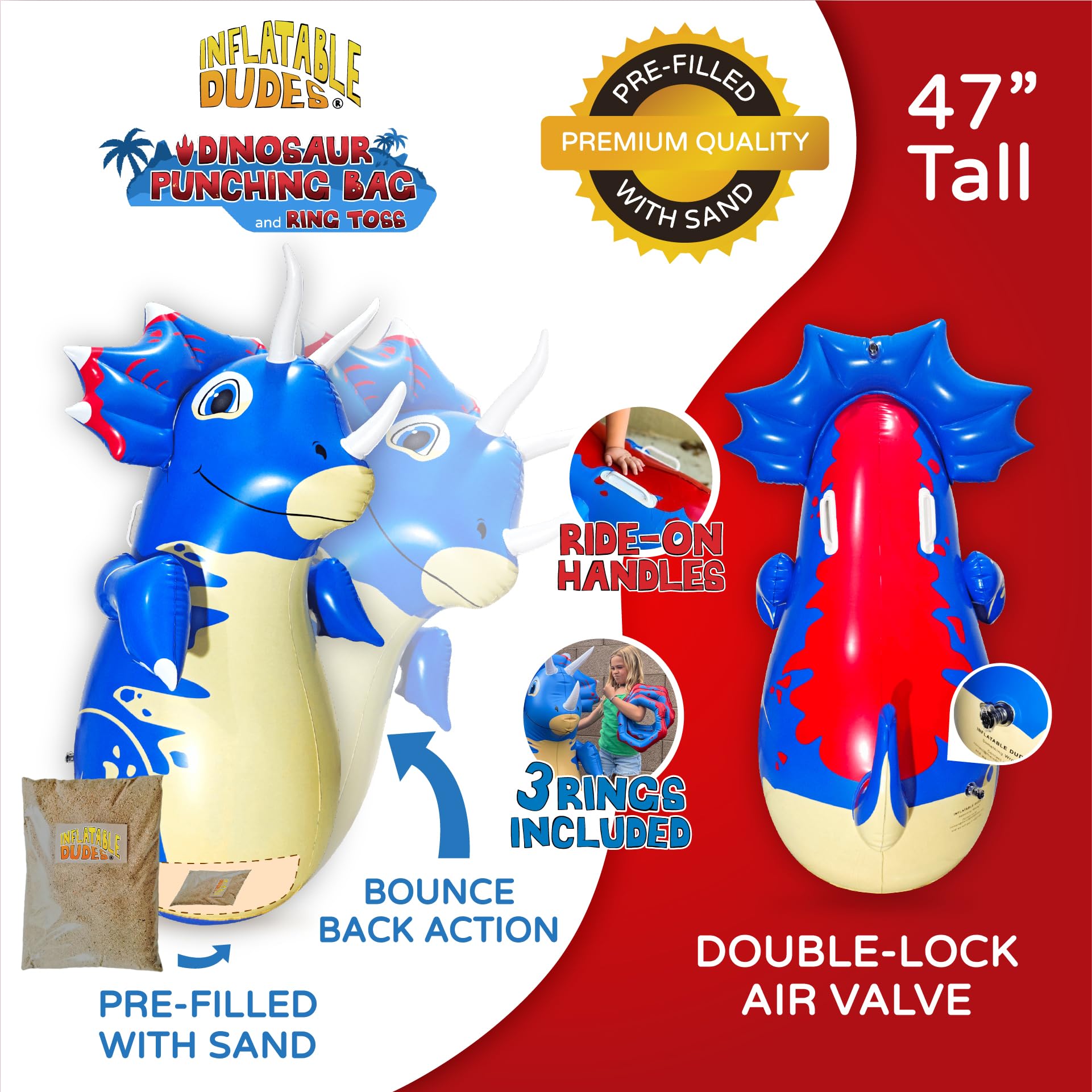 Inflatable Dudes Dinosaur 47 Inches- Kids Punching Bag| Already Filled With Sand |Triceratops Bop Bag |Ring Toss With 3 Inflatab