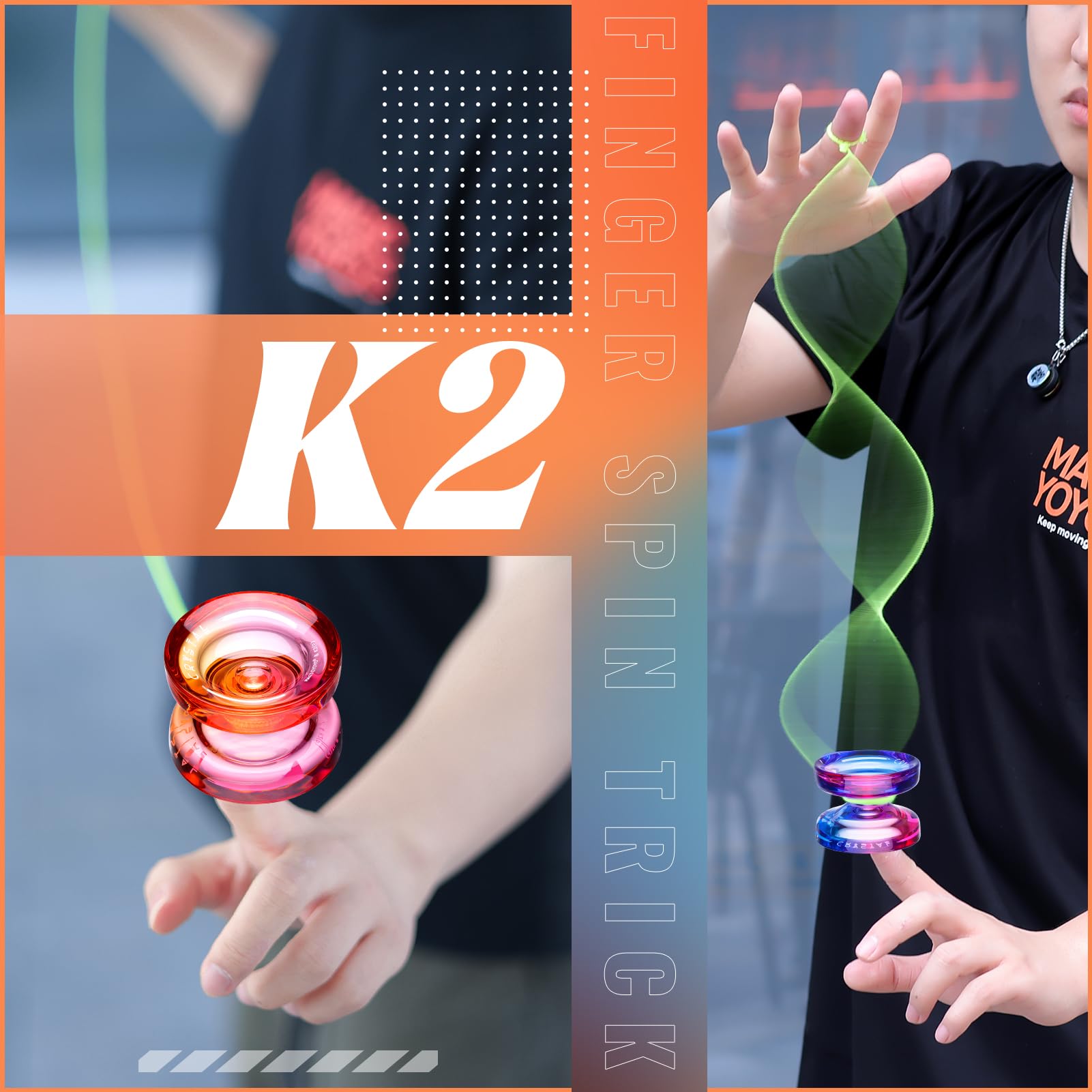 MAGICYOYO yoyo K2 is a good chioce for practicing fingerspin tricks with competition-grade performance! Yoyo K2 is durable and fun design so the shape was chosen to be comfortable, beautiful. The Yo yo K2 can be used for competition and daily practice for the more difficult moves in yo-yo. DUAL PURPOSE YOYO K2 MODE Responsive Yoyo: Yoyo responsive can be return back easily when you tug the yoyo string gently. Who Suitable: Beginners and starter who haven't learned “Bind” return yoyo skills yet. Suitable Tricks: Short spin time / Simple and Basic yoyo tricks Unresponsive Yoyo: You will need to learn a trick called a 'bind' to bring the yoyo back. Who Suitable: Intermediate and advanced /Competition. Suitable Tricks: Longer spin time / complicated yoyo tricks YOYO K2 SPECIFICATION: Material: Plastic PC Body Shape: Butterfly Weight: 64g Diameter: 55.3mm Gap Width: 4mm Surface: Shining Finish Original Bearing: Narrow C Bearing(for responsive yoyo mode) Extra Yoyo Bearing: KK Bearing (for unresponsive yoyo mode) Extra Axle Size: M4*10 MM String 100% Polyester; length : 110cm THE BEST YOYO GIFT CHOICE FOR KIDS Our yoyo gift will be the good present sending to your kids, family and friends on birthday, graduation, Christmas, Children's Day. MAGICYOYO YOYO K2 not only exercise hand-eye coordination, but also enhance the parent-child relationship. More practice done, more exciting tricks get, as do all your school friends.