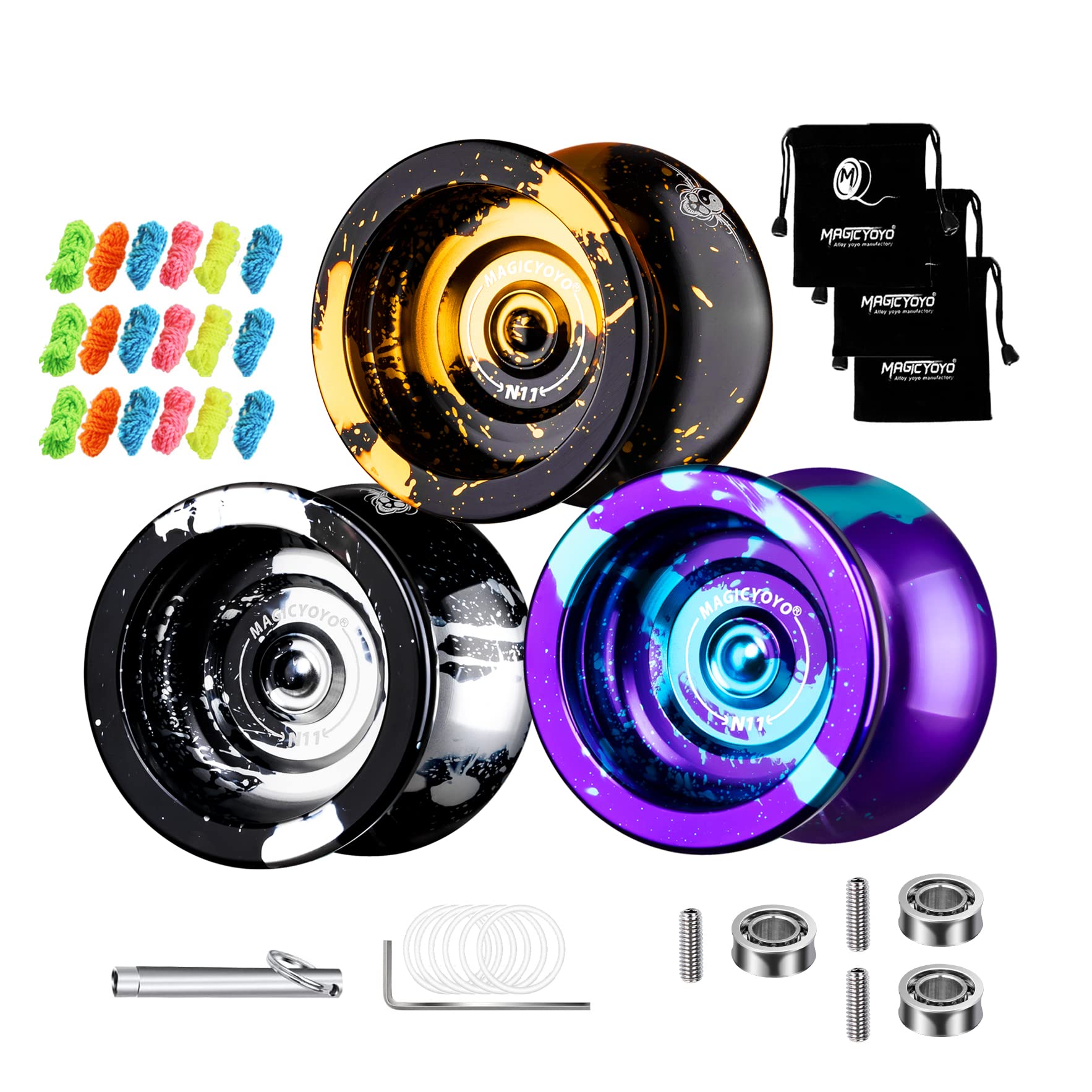 Magicyoyo Pack Of 3 Dual Purpose Yoyos- N11 Responsive& Unresponsive Yoyo With Bearing For Advanced + Bearing Tool + 3 Bags +18